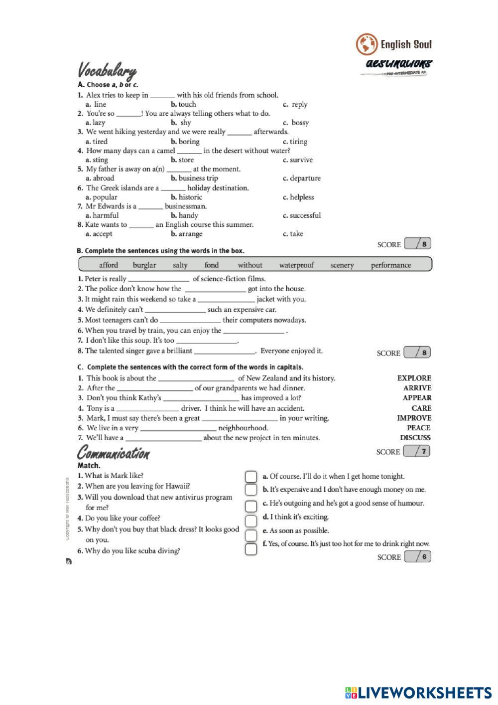 Created by Lucygrymak English as a Second Language (ESL) End-of-the-year 2024 Age 12+ level: A2 English Author's Instructions My Google Classroom Courses × 0 classes selected (0 students total) Quick Access Select all classes (0 classes) All Classes Loading courses... Cancel Share Share to selected Course __COURSE_NAME__ __STUDENT_NAME__ (__STUDENT_EMAIL__) End-of-the-year 2024 Download Worksheet Validation Check my answers Emails my answers to my teacher Full name Group/level School subject Teacher's email or key code Close Submit Validating worksheet... (12) Your answers have been sent to your teacher. Good luck! OK We encountered an error submitting your answers. Please try again. OK Advertisement | Go Ad Free Created by Lucygrymak English as a Second Language (ESL) End-of-the-year 2024 Age 12+ level: A2 English Author's Instructions
