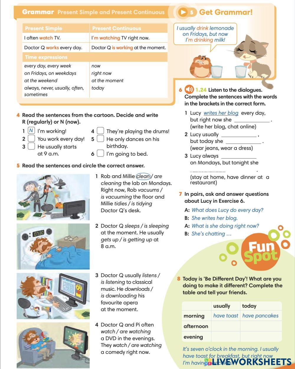 Created by leyksush English as a Second Language (ESL) Grammar Age 6-17 level: elementary English Author's Instructions My Google Classroom Courses × 0 classes selected (0 students total) Quick Access Select all classes (0 classes) All Classes Loading courses... Cancel Share Share to selected Course __COURSE_NAME__ __STUDENT_NAME__ (__STUDENT_EMAIL__) Pr. Simple vs Pr. Continuous Download Worksheet Validation Check my answers Emails my answers to my teacher Full name Group/level School subject Teacher's email or key code Close Submit Validating worksheet... (12) Your answers have been sent to your teacher. Good luck! OK We encountered an error submitting your answers. Please try again. OK Advertisement | Go Ad Free Created by leyksush English as a Second Language (ESL) Grammar Age 6-17 level: elementary English Author's Instructions