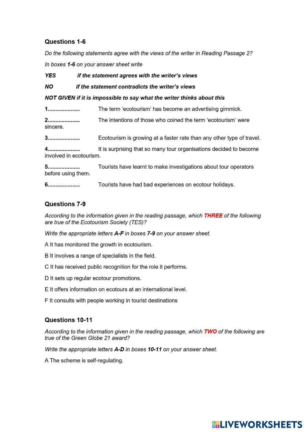Created byHòa Bùi English as a Second Language (ESL) Reading comprehension Age 13+ level: intermediate English Author's Instructions My Google Classroom Courses × 0 classes selected (0 students total) Quick Access Select all classes (0 classes) All Classes Loading courses... Cancel Share Share to selected Course __COURSE_NAME__ __STUDENT_NAME__ (__STUDENT_EMAIL__) Extra reading week 1 Download Worksheet Validation Check my answers Emails my answers to my teacher Full name Group/level School subject Teacher's email or key code Close Submit Validating worksheet... (12) Your answers have been sent to your teacher. Good luck! OK We encountered an error submitting your answers. Please try again. OK Advertisement | Go Ad Free Created byHòa Bùi English as a Second Language (ESL) Reading comprehension Age 13+ level: intermediate English Author's Instructions