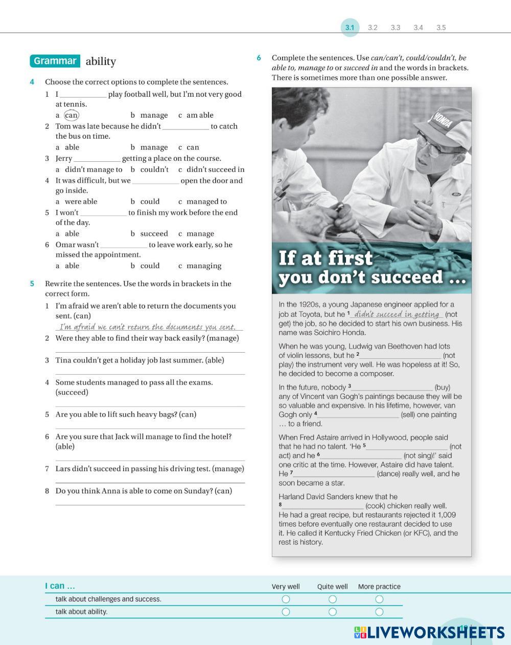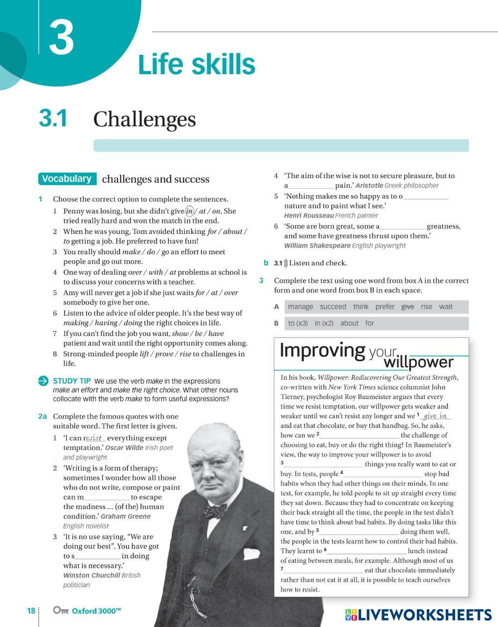 Created by davinia2008 English as a Second Language (ESL) Ability Age 15+ level: B1+ English Author's Instructions My Google Classroom Courses × 0 classes selected (0 students total) Quick Access Select all classes (0 classes) All Classes Loading courses... Cancel Share Share to selected Course __COURSE_NAME__ __STUDENT_NAME__ (__STUDENT_EMAIL__) Navigate B1+: 3.1 Challenges Download Worksheet Validation Check my answers Emails my answers to my teacher Full name Group/level School subject Teacher's email or key code Close Submit Validating worksheet... (12) Your answers have been sent to your teacher. Good luck! OK We encountered an error submitting your answers. Please try again. OK Advertisement | Go Ad Free Created by davinia2008 English as a Second Language (ESL) Ability Age 15+ level: B1+ English Author's Instructions