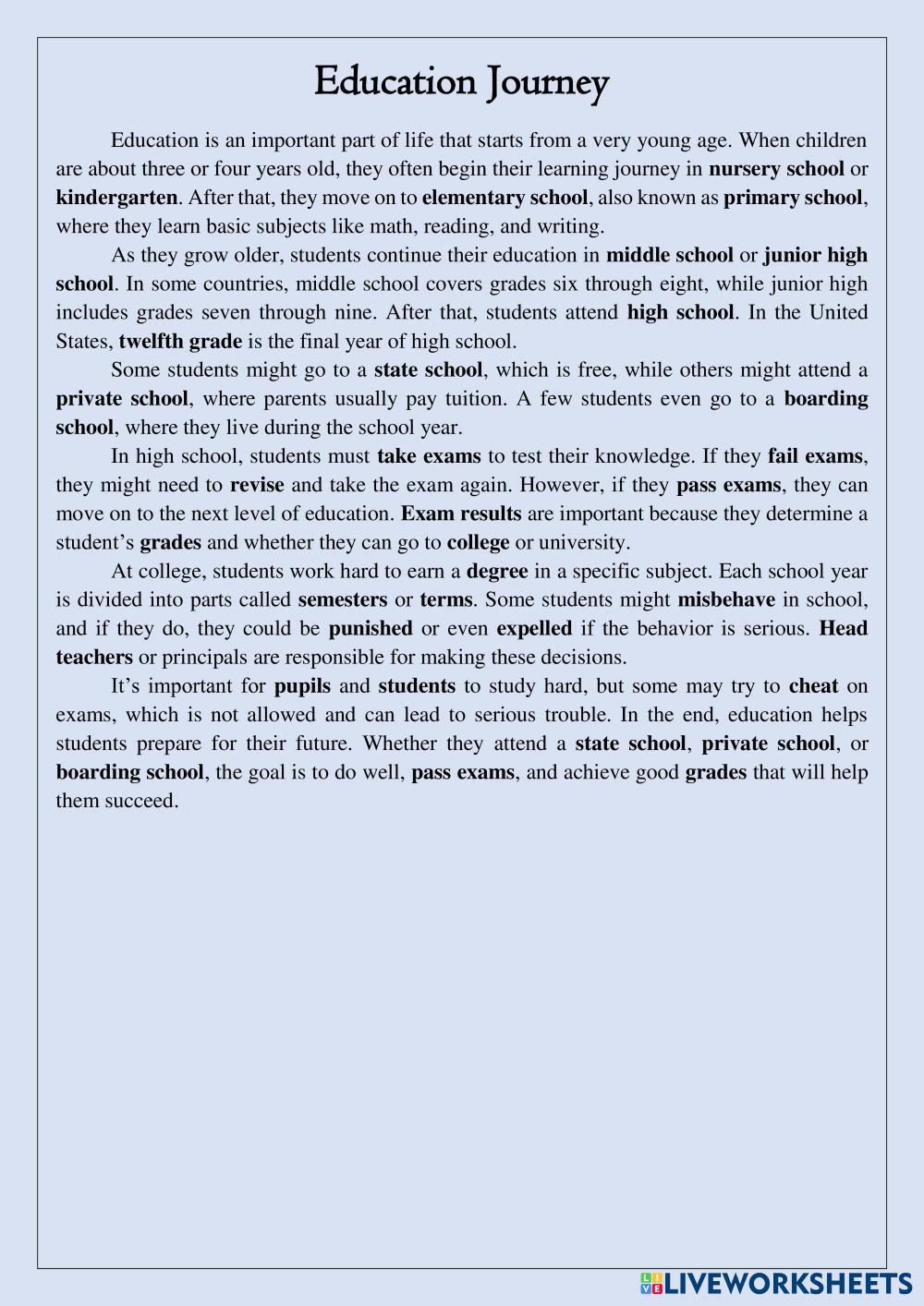 - Education vocabulary