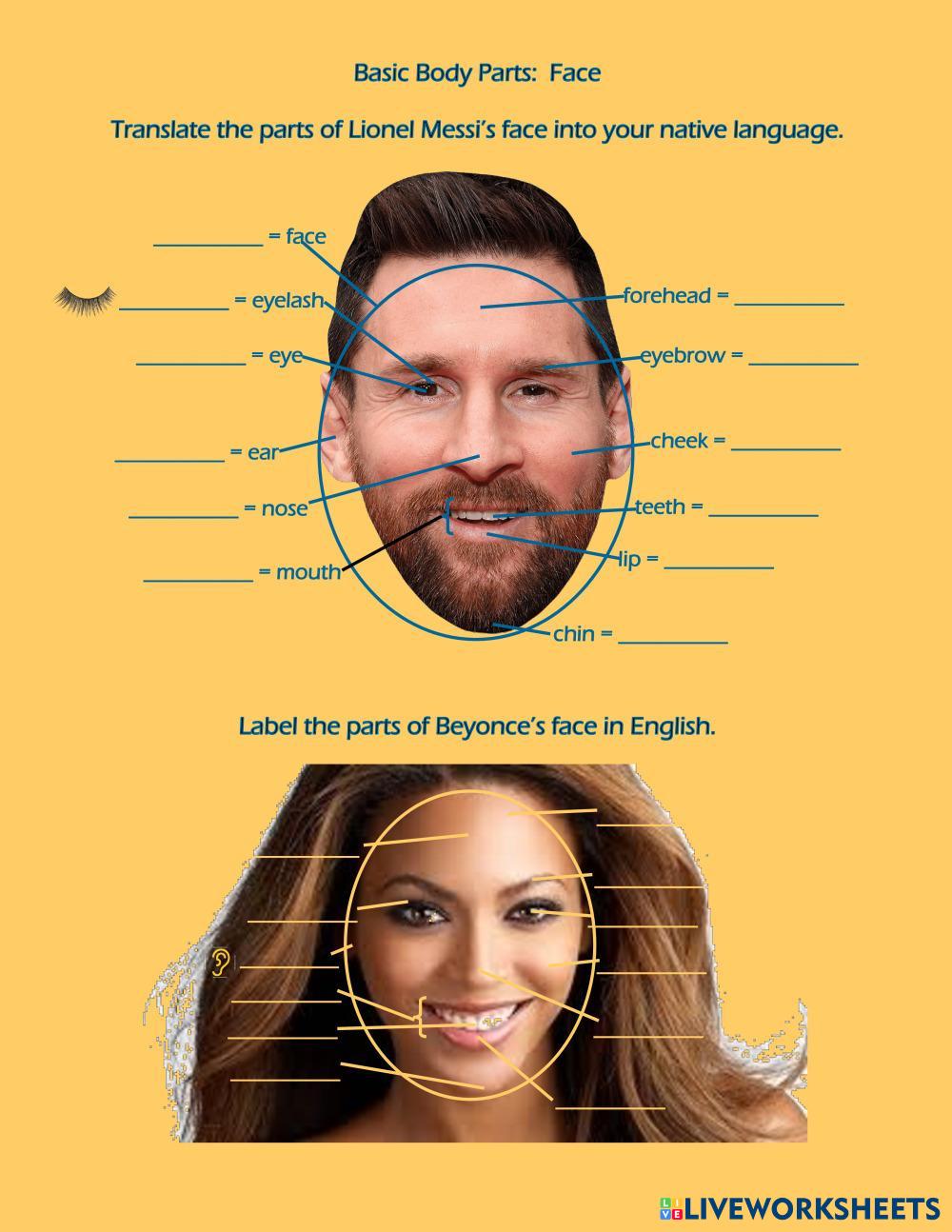 This worksheet uses celebrities as the basis for introducing the names for different body parts.
