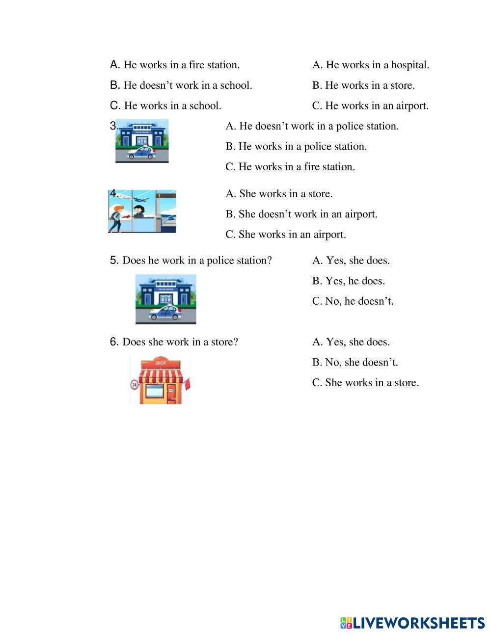 Created byHuong English as a Second Language (ESL) Jobs and workplaces Age 9-13 level: G4 English Author's Instructions My Google Classroom Courses × 0 classes selected (0 students total) Quick Access Select all classes (0 classes) All Classes Loading courses... Cancel Share Share to selected Course __COURSE_NAME__ __STUDENT_NAME__ (__STUDENT_EMAIL__) Unit 1,2 Download Worksheet Validation Check my answers Emails my answers to my teacher Full name Group/level School subject Teacher's email or key code Close Submit Validating worksheet... (12) Your answers have been sent to your teacher. Good luck! OK We encountered an error submitting your answers. Please try again. OK Advertisement | Go Ad Free Created byHuong English as a Second Language (ESL) Jobs and workplaces Age 9-13 level: G4 English Author's Instructions
