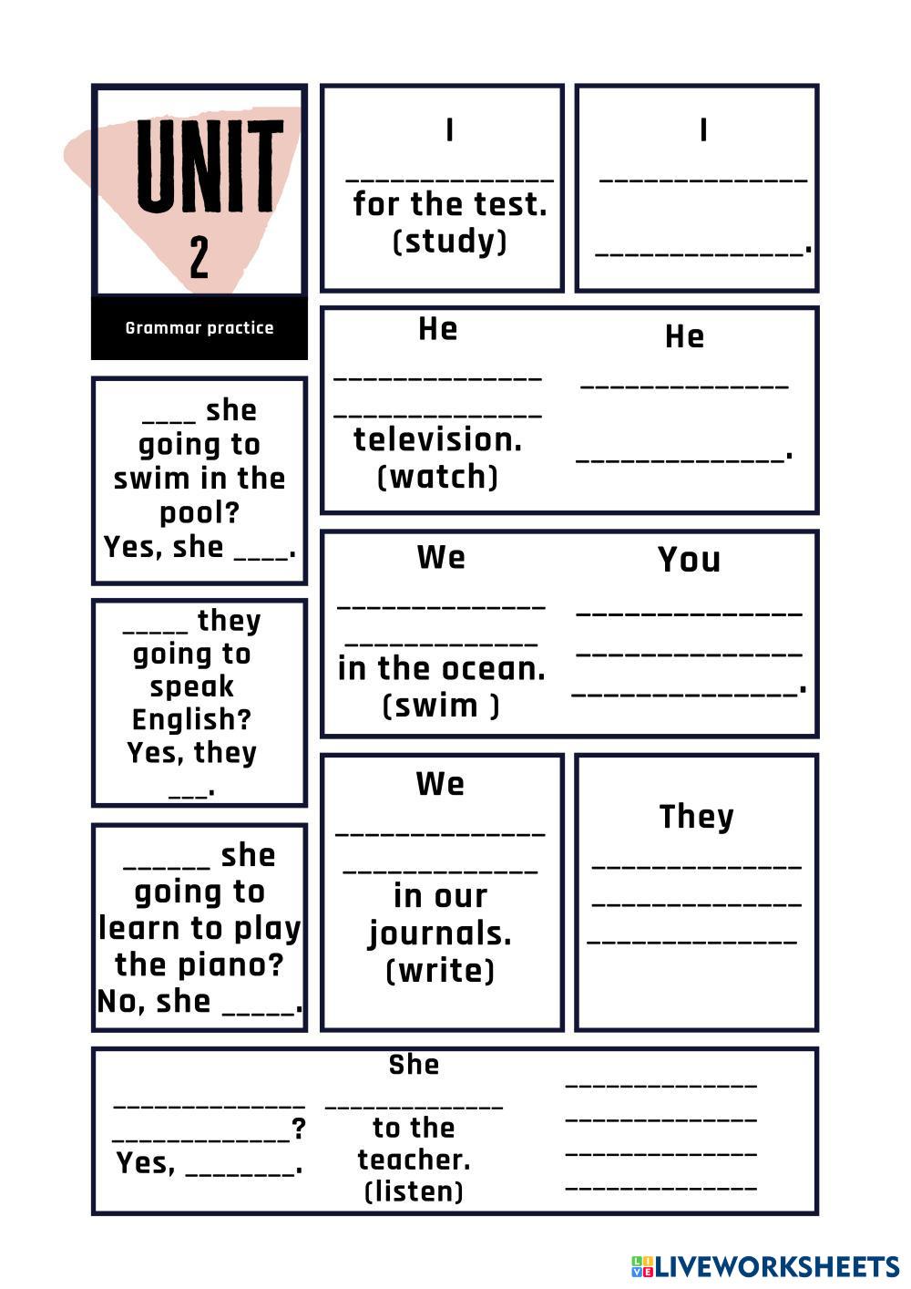 Created bySinead English as a Second Language (ESL) Grammar Age 5-13 level: 3 English Author's Instructions My Google Classroom Courses × 0 classes selected (0 students total) Quick Access Select all classes (0 classes) All Classes Loading courses... Cancel Share Share to selected Course __COURSE_NAME__ __STUDENT_NAME__ (__STUDENT_EMAIL__) Unit 2 grammar practice Download Worksheet Validation Check my answers Emails my answers to my teacher Full name Group/level School subject Teacher's email or key code Close Submit Validating worksheet... (12) Your answers have been sent to your teacher. Good luck! OK We encountered an error submitting your answers. Please try again. OK Advertisement | Go Ad Free Created bySinead English as a Second Language (ESL) Grammar Age 5-13 level: 3 English Author's Instructions