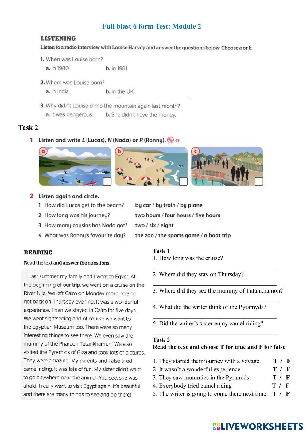 Created byMaryna Nezhyva English as a Second Language (ESL) Tests and exams Age 9-15 level: 6 English Author's Instructions Travelling My Google Classroom Courses × 0 classes selected (0 students total) Quick Access Select all classes (0 classes) All Classes Loading courses... Cancel Share Share to selected Course __COURSE_NAME__ __STUDENT_NAME__ (__STUDENT_EMAIL__) FULL BLAST 6 NUS – TEST: MODULE 2_L_R Download Worksheet Validation Check my answers Emails my answers to my teacher Full name Group/level School subject Teacher's email or key code Close Submit Validating worksheet... (12) Your answers have been sent to your teacher. Good luck! OK We encountered an error submitting your answers. Please try again. OK Advertisement | Go Ad Free Created byMaryna Nezhyva English as a Second Language (ESL) Tests and exams Age 9-15 level: 6 English Author's Instructions Travelling