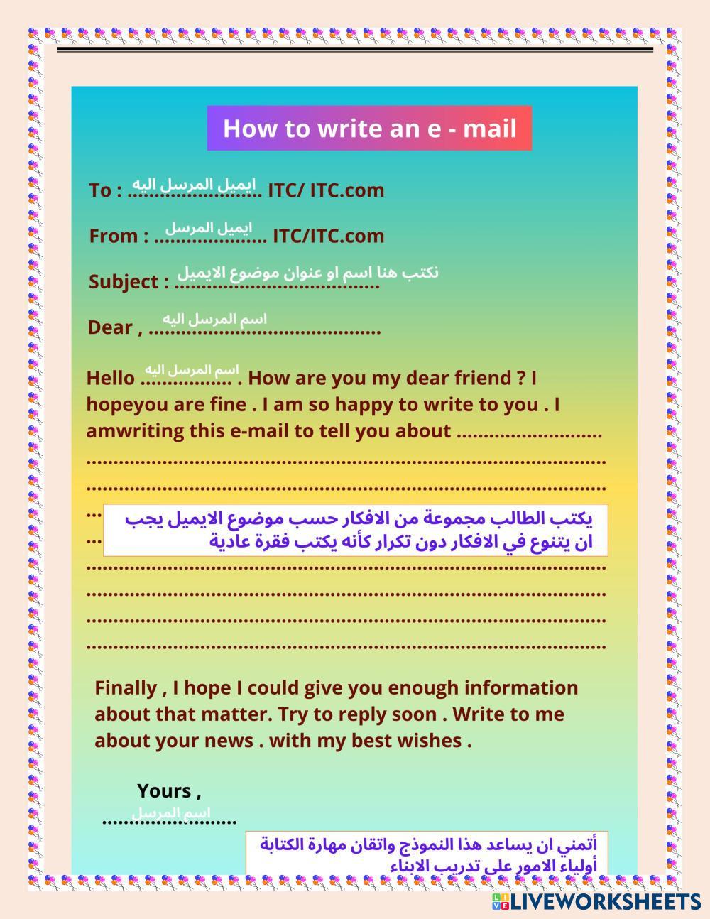 Writing ( The student write an e mail about himself and his family .