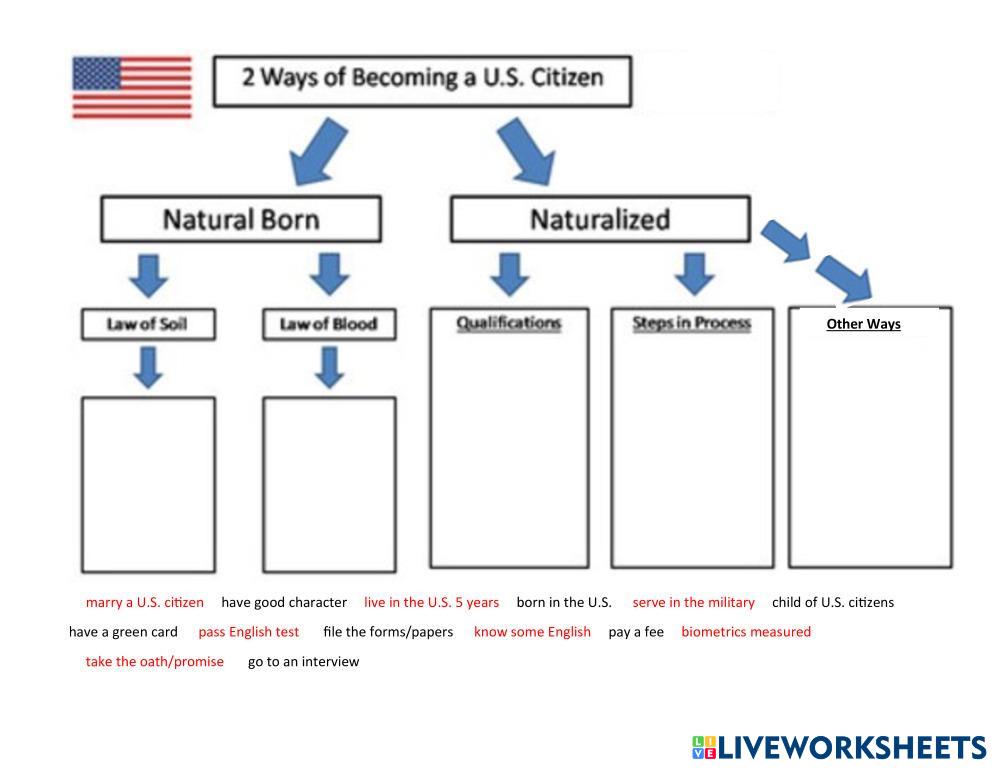 Students read a brief article about becoming a citizen. Students complete a graphic organizer for that article.