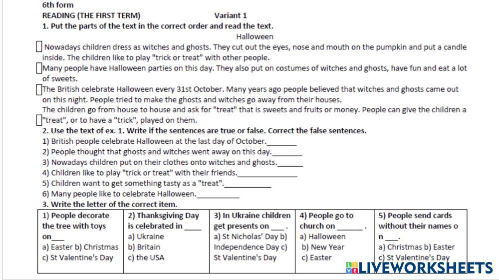 Created bymariia English as a Second Language (ESL) Reading comprehension Age 3+ level: elementary English Author's Instructions My Google Classroom Courses × 0 classes selected (0 students total) Quick Access Select all classes (0 classes) All Classes Loading courses... Cancel Share Share to selected Course __COURSE_NAME__ __STUDENT_NAME__ (__STUDENT_EMAIL__) 6 grade. reading Download Worksheet Validation Check my answers Emails my answers to my teacher Full name Group/level School subject Teacher's email or key code Close Submit Validating worksheet... (12) Your answers have been sent to your teacher. Good luck! OK We encountered an error submitting your answers. Please try again. OK Advertisement | Go Ad Free Created bymariia English as a Second Language (ESL) Reading comprehension Age 3+ level: elementary English Author's Instructions