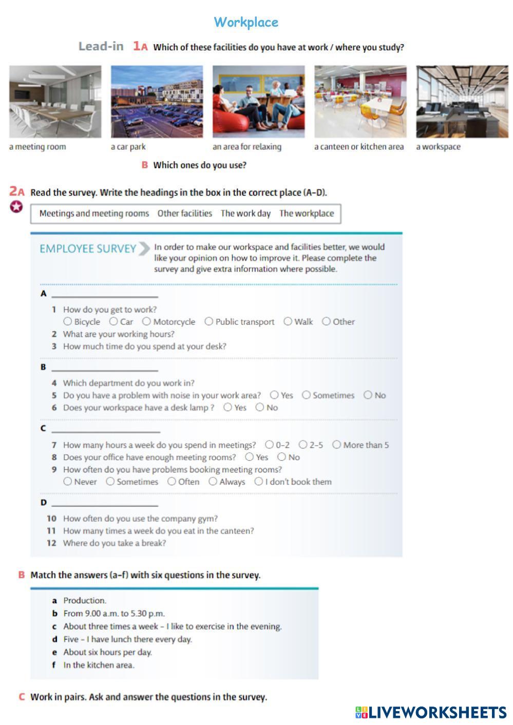 Created by annetavalinova English as a Second Language (ESL) Workplaces Age 18+ level: a2 English Author's Instructions My Google Classroom Courses × 0 classes selected (0 students total) Quick Access Select all classes (0 classes) All Classes Loading courses... Cancel Share Share to selected Course __COURSE_NAME__ __STUDENT_NAME__ (__STUDENT_EMAIL__) Workplace Download Worksheet Validation Check my answers Emails my answers to my teacher Full name Group/level School subject Teacher's email or key code Close Submit Validating worksheet... (12) Your answers have been sent to your teacher. Good luck! OK We encountered an error submitting your answers. Please try again. OK Advertisement | Go Ad Free Created by annetavalinova English as a Second Language (ESL) Workplaces Age 18+ level: a2 English Author's Instructions