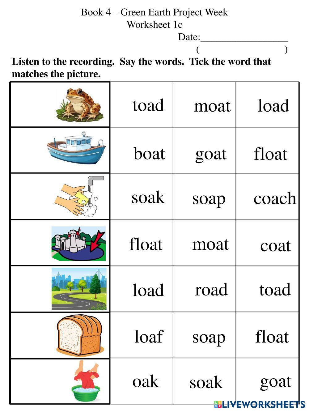 Created byGauri Venkitaraman English as a Second Language (ESL) Long o Age 5-15 level: Grade 3 English Author's Instructions My Google Classroom Courses × 0 classes selected (0 students total) Quick Access Select all classes (0 classes) All Classes Loading courses... Cancel Share Share to selected Course __COURSE_NAME__ __STUDENT_NAME__ (__STUDENT_EMAIL__) 1c - Long O - oa worksheet Download Worksheet Validation Check my answers Emails my answers to my teacher Full name Group/level School subject Teacher's email or key code Close Submit Validating worksheet... (12) Your answers have been sent to your teacher. Good luck! OK We encountered an error submitting your answers. Please try again. OK Advertisement | Go Ad Free Created byGauri Venkitaraman English as a Second Language (ESL) Long o Age 5-15 level: Grade 3 English Author's Instructions