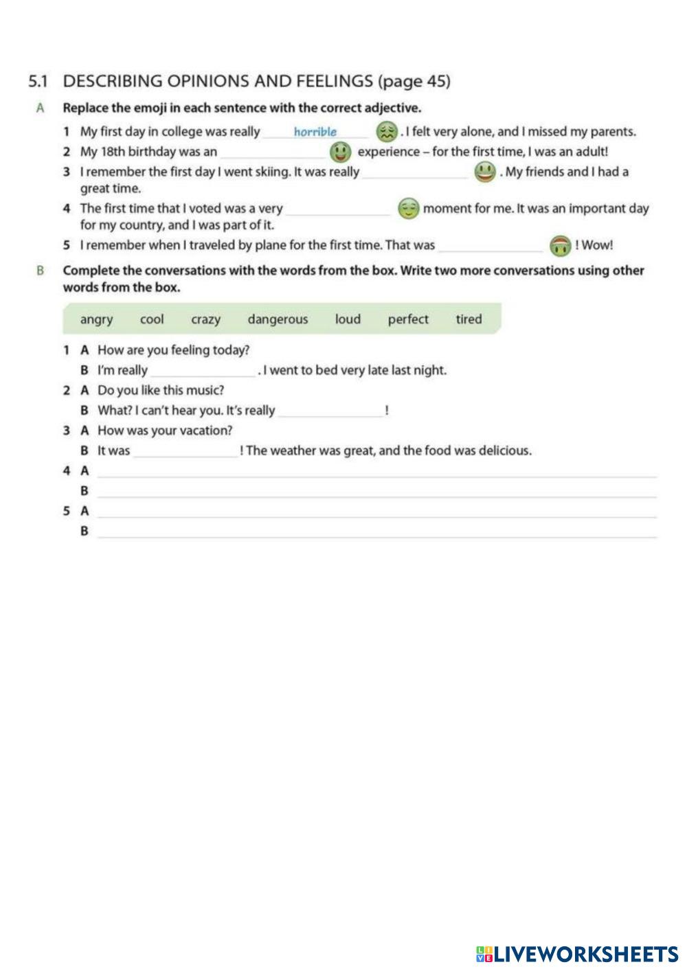 Stating opinions and feelings