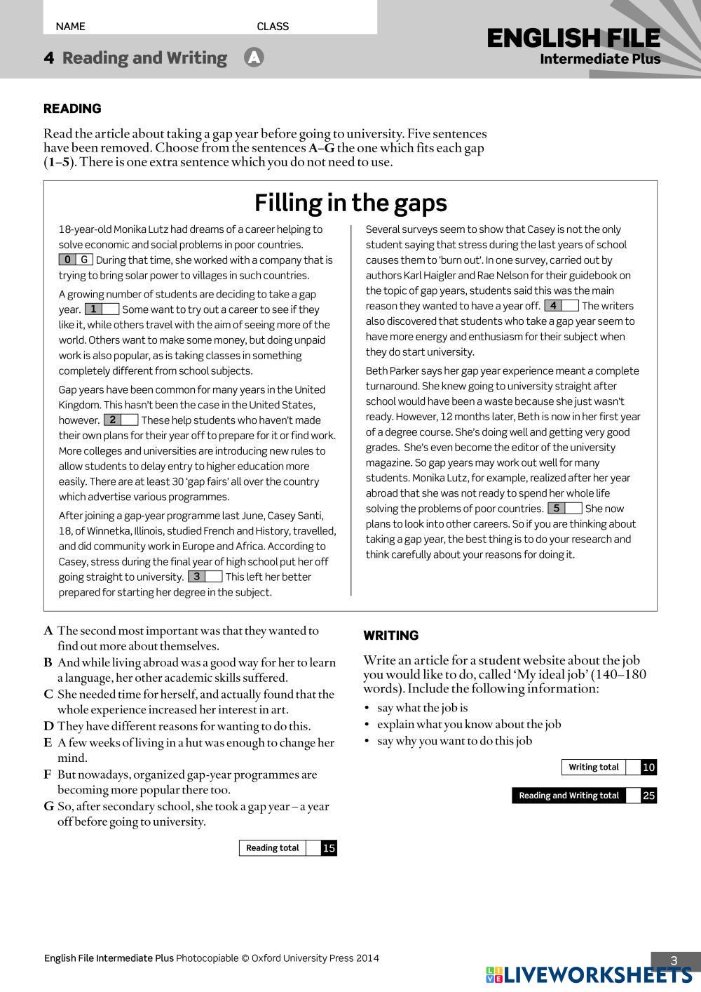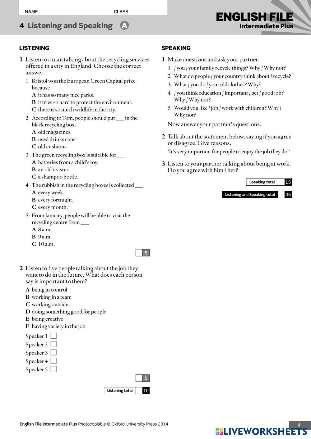 Created byOksana Smith English as a Second Language (ESL) Unit review Age 14+ level: B1-B2 English Author's Instructions My Google Classroom Courses × 0 classes selected (0 students total) Quick Access Select all classes (0 classes) All Classes Loading courses... Cancel Share Share to selected Course __COURSE_NAME__ __STUDENT_NAME__ (__STUDENT_EMAIL__) EF intermediate plus unit 4 review Download Worksheet Validation Check my answers Emails my answers to my teacher Full name Group/level School subject Teacher's email or key code Close Submit Validating worksheet... (12) Your answers have been sent to your teacher. Good luck! OK We encountered an error submitting your answers. Please try again. OK Advertisement | Go Ad Free Created byOksana Smith English as a Second Language (ESL) Unit review Age 14+ level: B1-B2 English Author's Instructions