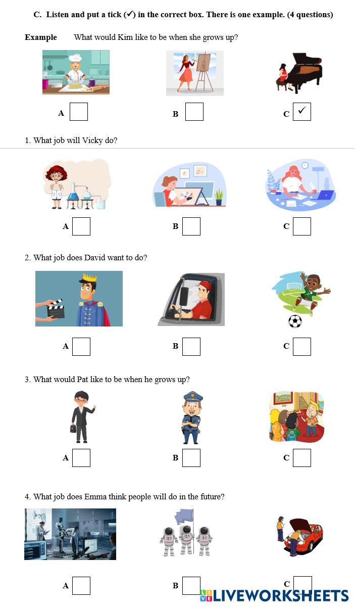 Created byTrần Thị Trúc English as a Second Language (ESL) Unit review Age 8-13 level: 5 English Author's Instructions My Google Classroom Courses × 0 classes selected (0 students total) Quick Access Select all classes (0 classes) All Classes Loading courses... Cancel Share Share to selected Course __COURSE_NAME__ __STUDENT_NAME__ (__STUDENT_EMAIL__) G4 - Unit 7: listening test Download Worksheet Validation Check my answers Emails my answers to my teacher Full name Group/level School subject Teacher's email or key code Close Submit Validating worksheet... (12) Your answers have been sent to your teacher. Good luck! OK We encountered an error submitting your answers. Please try again. OK Advertisement | Go Ad Free Created byTrần Thị Trúc English as a Second Language (ESL) Unit review Age 8-13 level: 5 English Author's Instructions