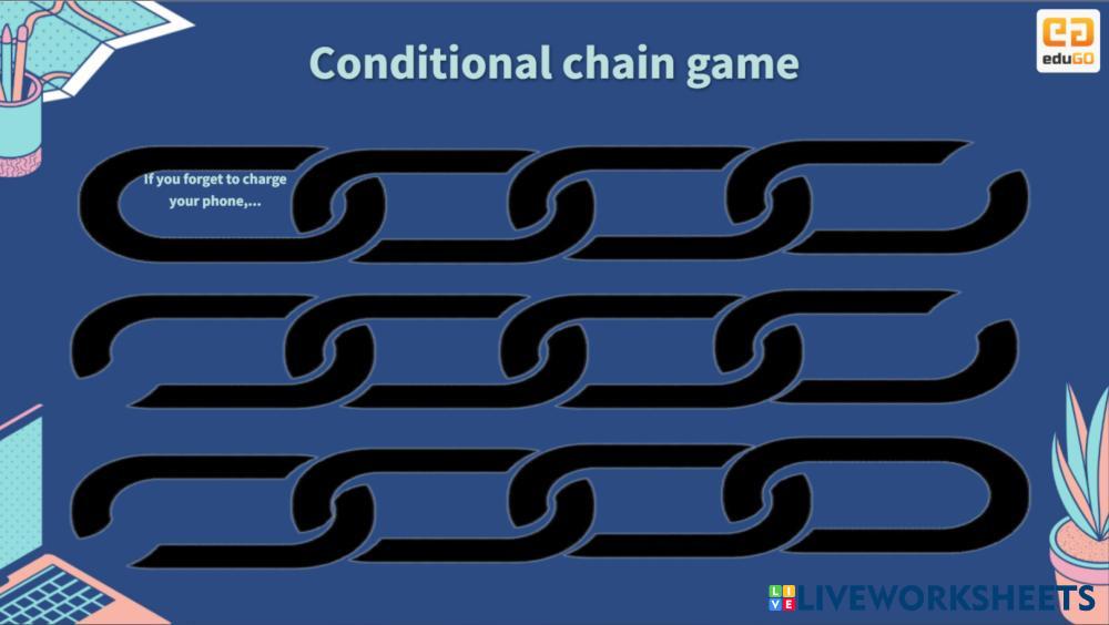Created byMariia English as a Second Language Conditional chain game Age 10+ level: A2-B1 English Author's Instructions My Google Classroom Courses × 0 classes selected (0 students total) Quick Access Select all classes (0 classes) All Classes Loading courses... Cancel Share Share to selected Course __COURSE_NAME__ __STUDENT_NAME__ (__STUDENT_EMAIL__) Conditional chain game Download Worksheet Validation Check my answers Emails my answers to my teacher Full name Group/level School subject Teacher's email or key code Close Submit Validating worksheet... (12) Your answers have been sent to your teacher. Good luck! OK We encountered an error submitting your answers. Please try again. OK Advertisement | Go Ad Free Created byMariia English as a Second Language Conditional chain game Age 10+ level: A2-B1 English Author's Instructions