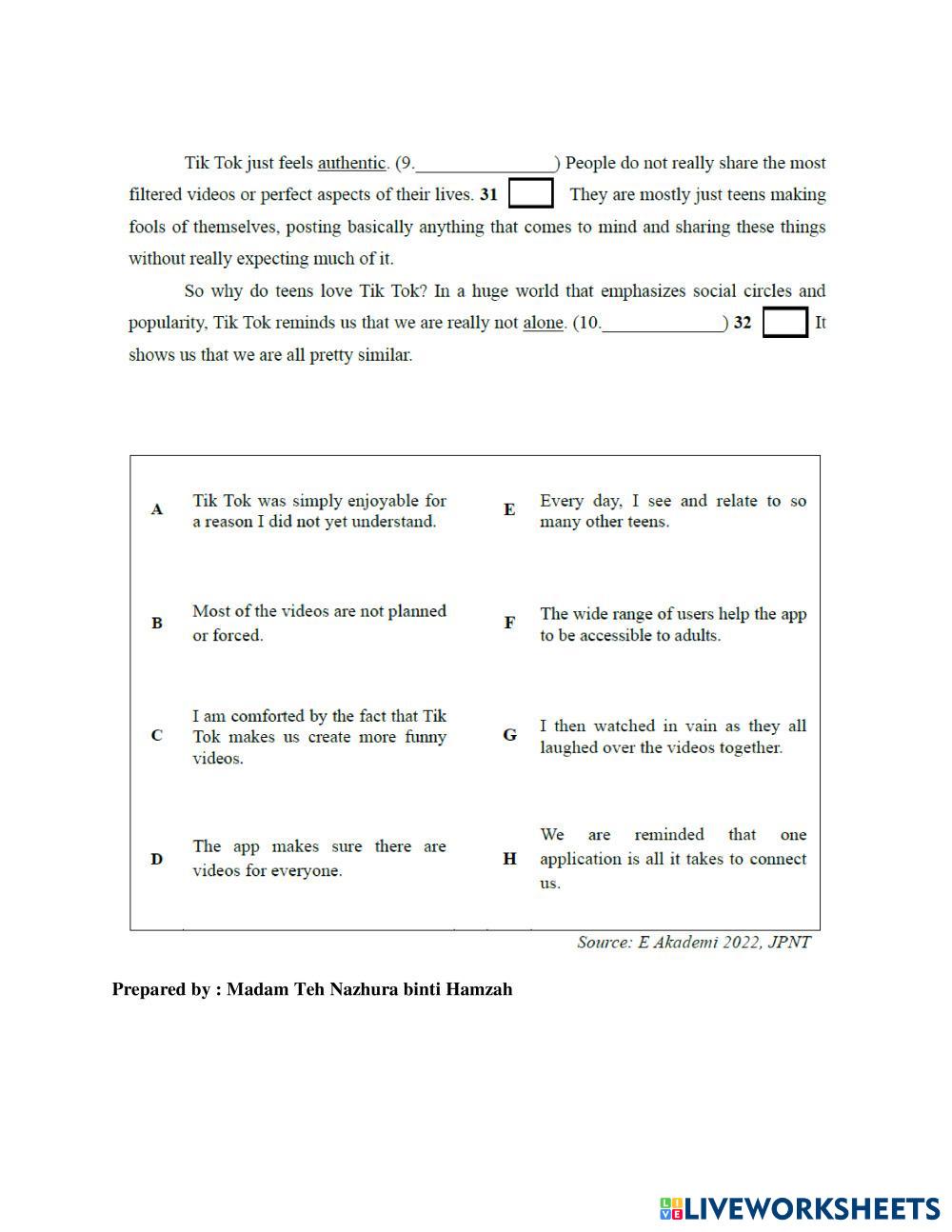 Six sentences have been removed from the blog post. Choose from the sentences A to H the one which fits each gap (27 to 32). There are two extra sentences which you do not need to use. Mark your answer on the answer sheet.