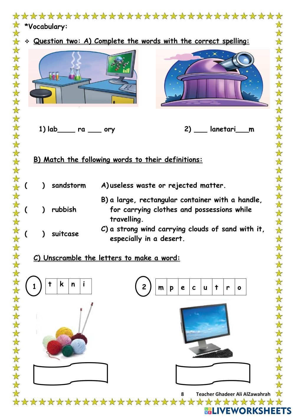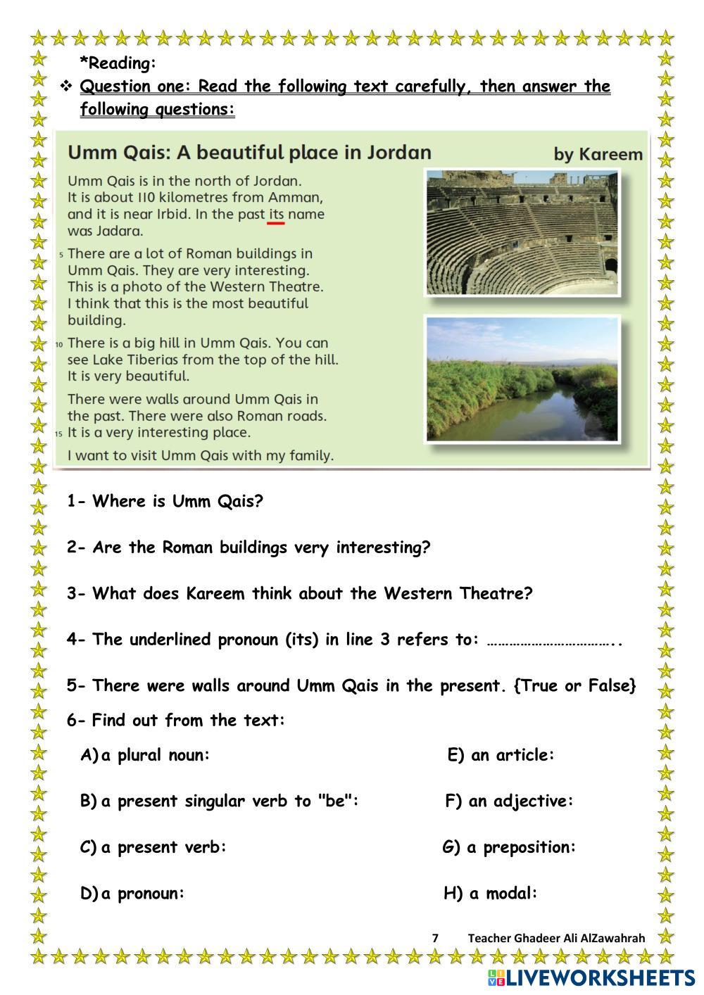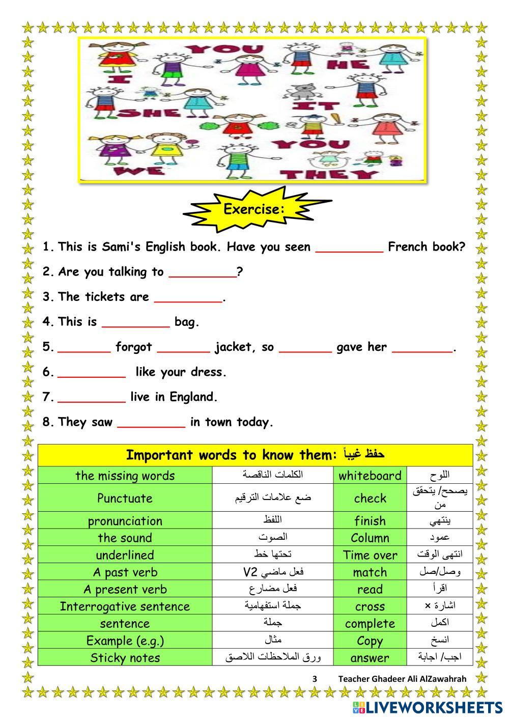 Remedial Worksheet for the 7th grade