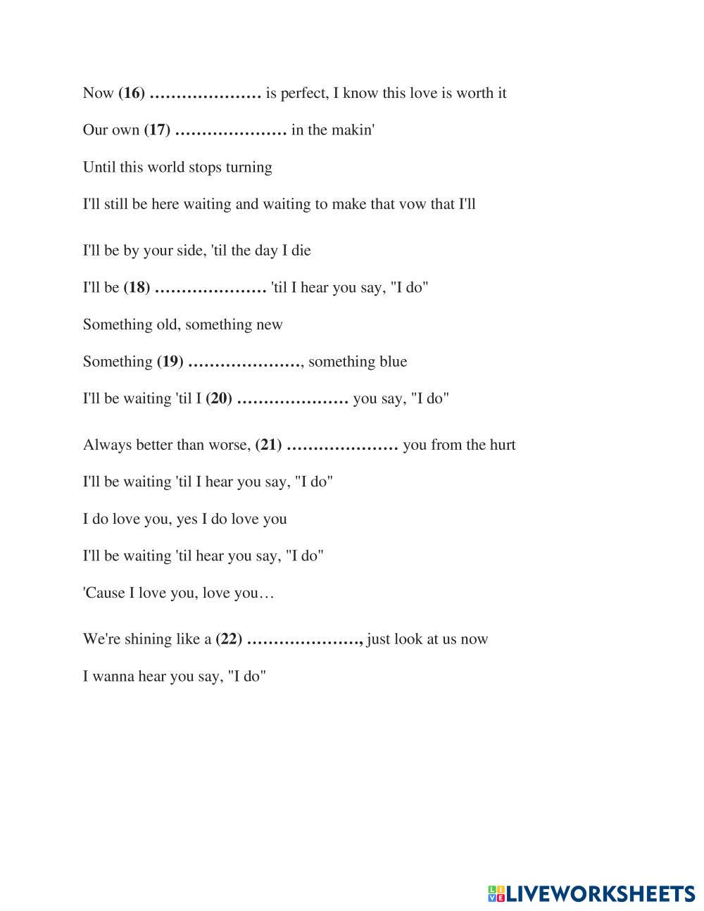 Created byLê Thùy Linh English Fill in the blanks Age 14-16 level: 4 English Author's Instructions My Google Classroom Courses × 0 classes selected (0 students total) Quick Access Select all classes (0 classes) All Classes Loading courses... Cancel Share Share to selected Course __COURSE_NAME__ __STUDENT_NAME__ (__STUDENT_EMAIL__) I do - 911 - Lyrics Download Worksheet Validation Check my answers Emails my answers to my teacher Full name Group/level School subject Teacher's email or key code Close Submit Validating worksheet... (12) Your answers have been sent to your teacher. Good luck! OK We encountered an error submitting your answers. Please try again. OK Advertisement | Go Ad Free Created byLê Thùy Linh English Fill in the blanks Age 14-16 level: 4 English Author's Instructions