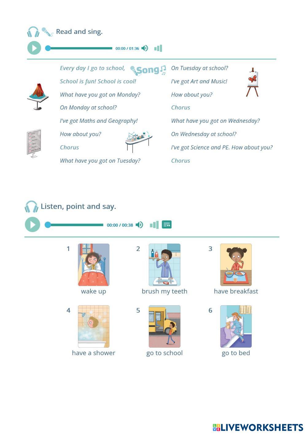 Created by alebabu English Routines Age 5-9 level: A1 English Author's Instructions My Google Classroom Courses × 0 classes selected (0 students total) Quick Access Select all classes (0 classes) All Classes Loading courses... Cancel Share Share to selected Course __COURSE_NAME__ __STUDENT_NAME__ (__STUDENT_EMAIL__) Rise and Shine 3 unit 1 Download Worksheet Validation Check my answers Emails my answers to my teacher Full name Group/level School subject Teacher's email or key code Close Submit Validating worksheet... (12) Your answers have been sent to your teacher. Good luck! OK We encountered an error submitting your answers. Please try again. OK Advertisement | Go Ad Free Created by alebabu English Routines Age 5-9 level: A1 English Author's Instructions