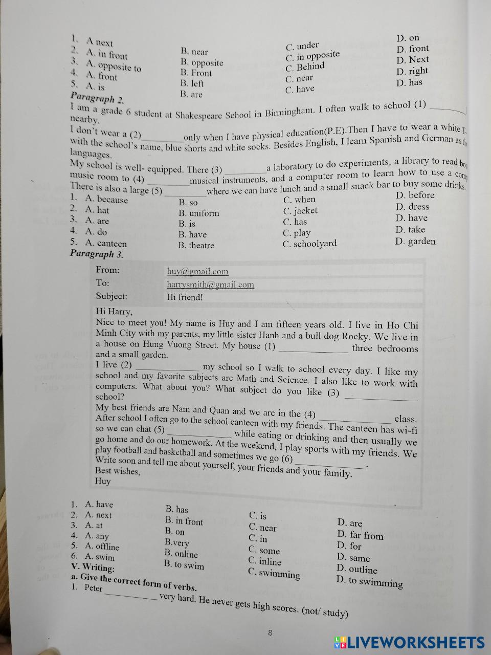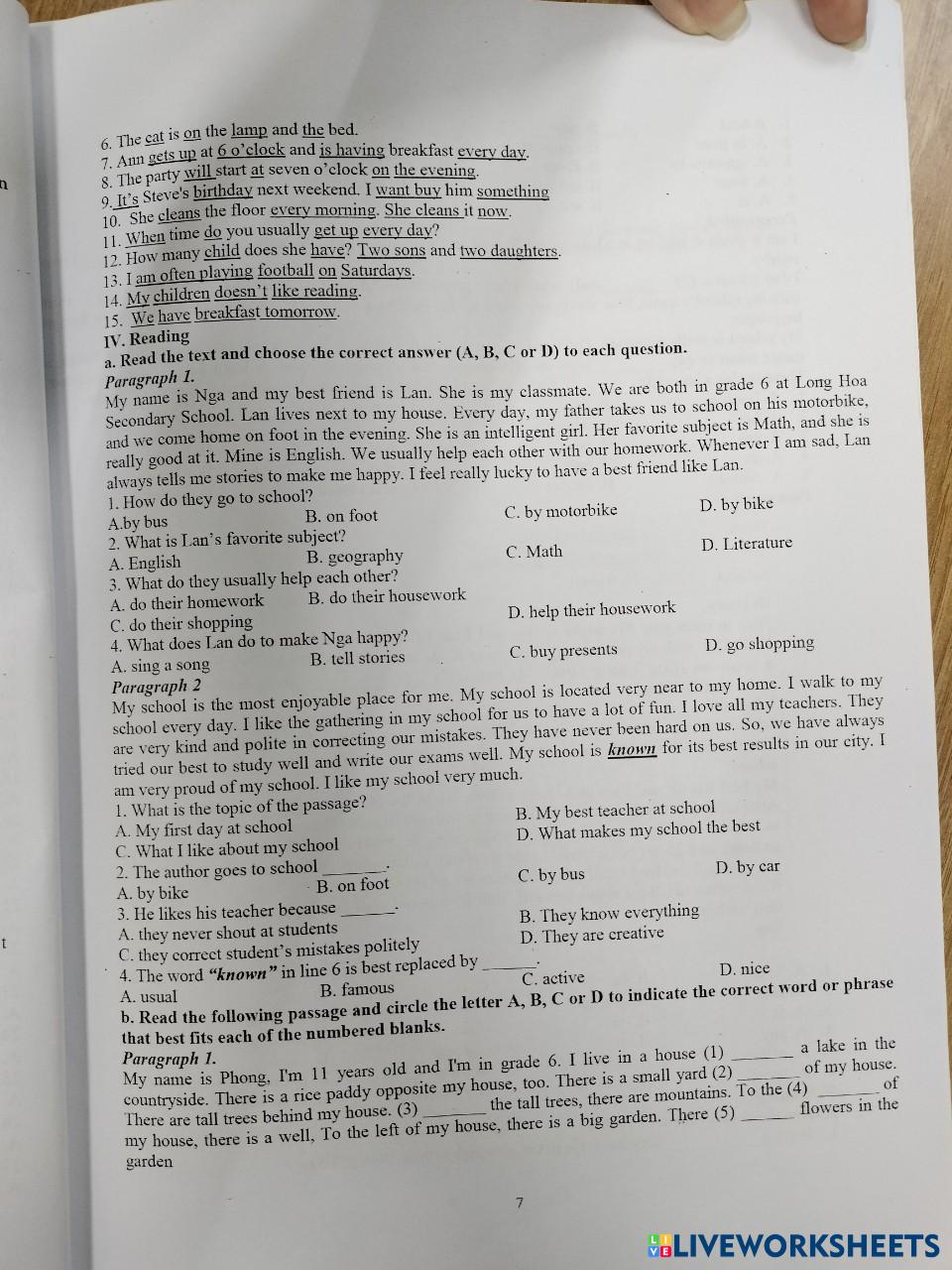 Created by blackcat21 English Grammar Age 12-9 level: A1 English Author's Instructions My Google Classroom Courses × 0 classes selected (0 students total) Quick Access Select all classes (0 classes) All Classes Loading courses... Cancel Share Share to selected Course __COURSE_NAME__ __STUDENT_NAME__ (__STUDENT_EMAIL__) prepare for midterm grade 6 Download Worksheet Validation Check my answers Emails my answers to my teacher Full name Group/level School subject Teacher's email or key code Close Submit Validating worksheet... (12) Your answers have been sent to your teacher. Good luck! OK We encountered an error submitting your answers. Please try again. OK Advertisement | Go Ad Free Created by blackcat21 English Grammar Age 12-9 level: A1 English Author's Instructions