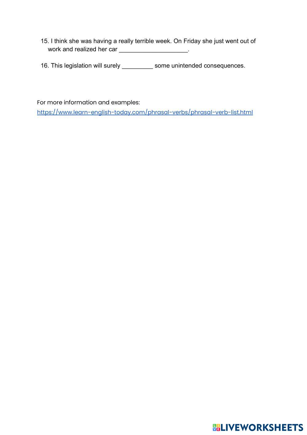 Practise the use of some phrasal verbs into context.