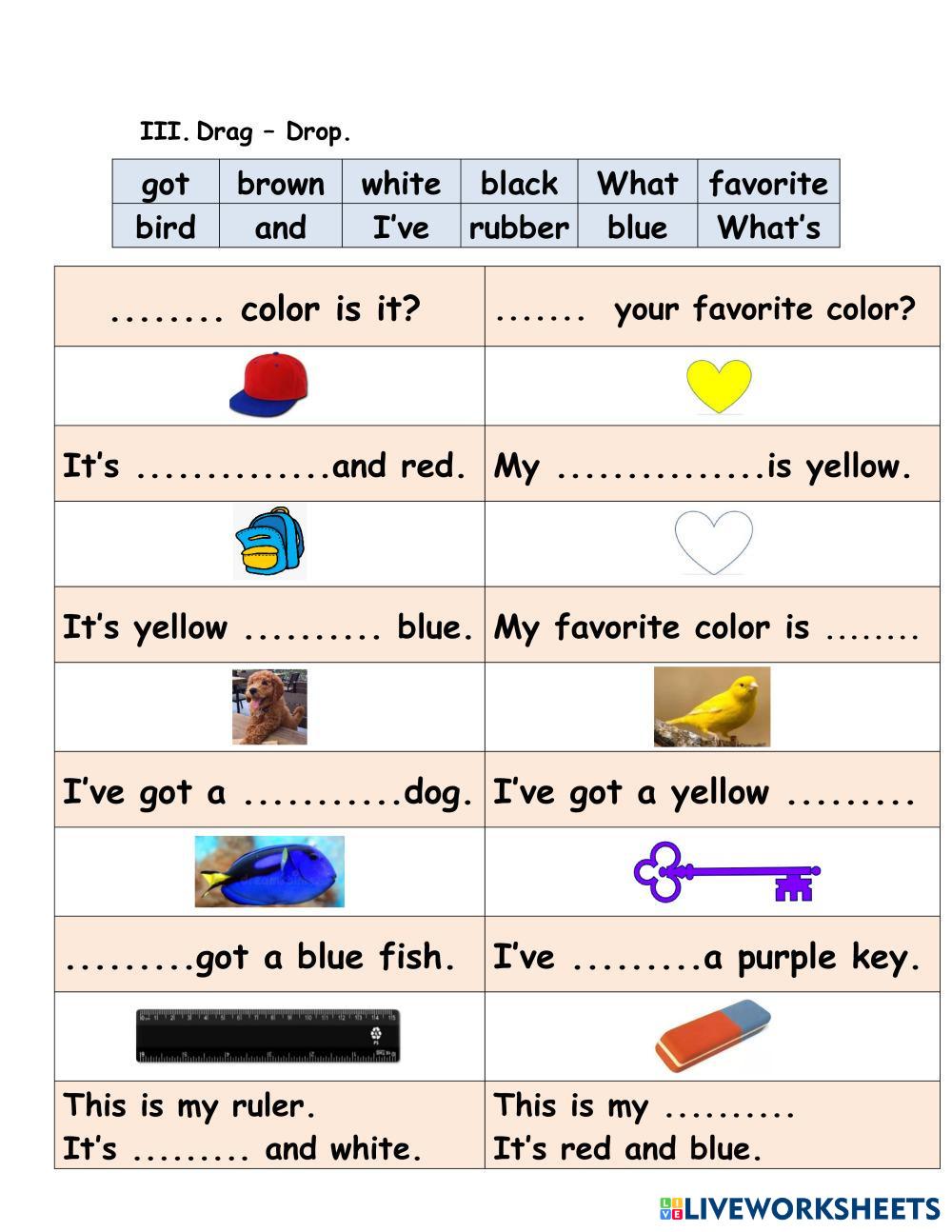 Created by thutrang3103 English English Age 5-9 level: 1 English Author's Instructions My Google Classroom Courses × 0 classes selected (0 students total) Quick Access Select all classes (0 classes) All Classes Loading courses... Cancel Share Share to selected Course __COURSE_NAME__ __STUDENT_NAME__ (__STUDENT_EMAIL__) Colors Download Worksheet Validation Check my answers Emails my answers to my teacher Full name Group/level School subject Teacher's email or key code Close Submit Validating worksheet... (12) Your answers have been sent to your teacher. Good luck! OK We encountered an error submitting your answers. Please try again. OK Advertisement | Go Ad Free Created by thutrang3103 English English Age 5-9 level: 1 English Author's Instructions