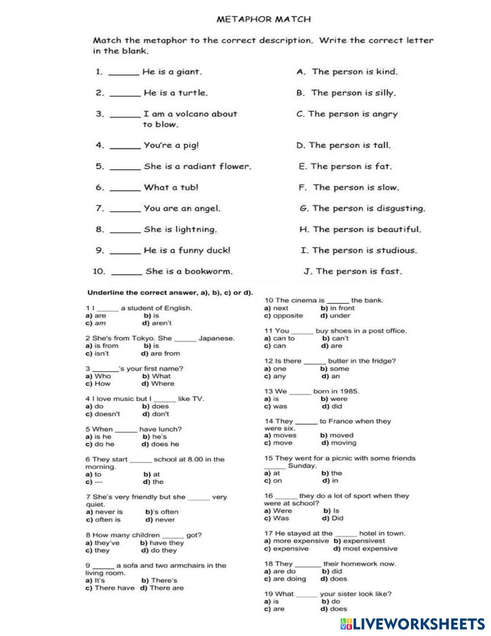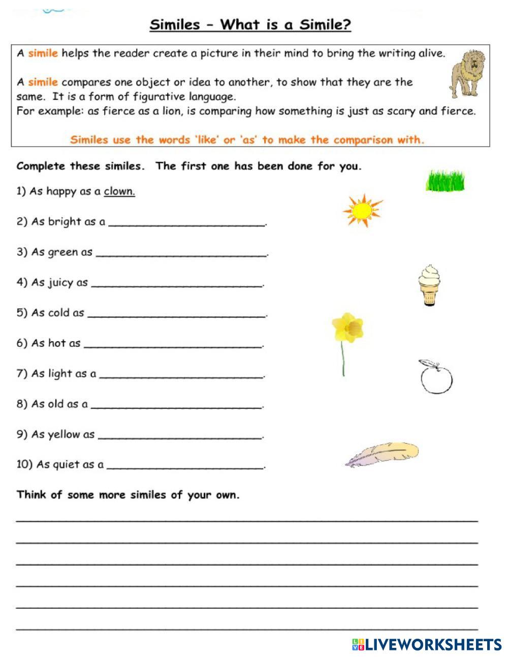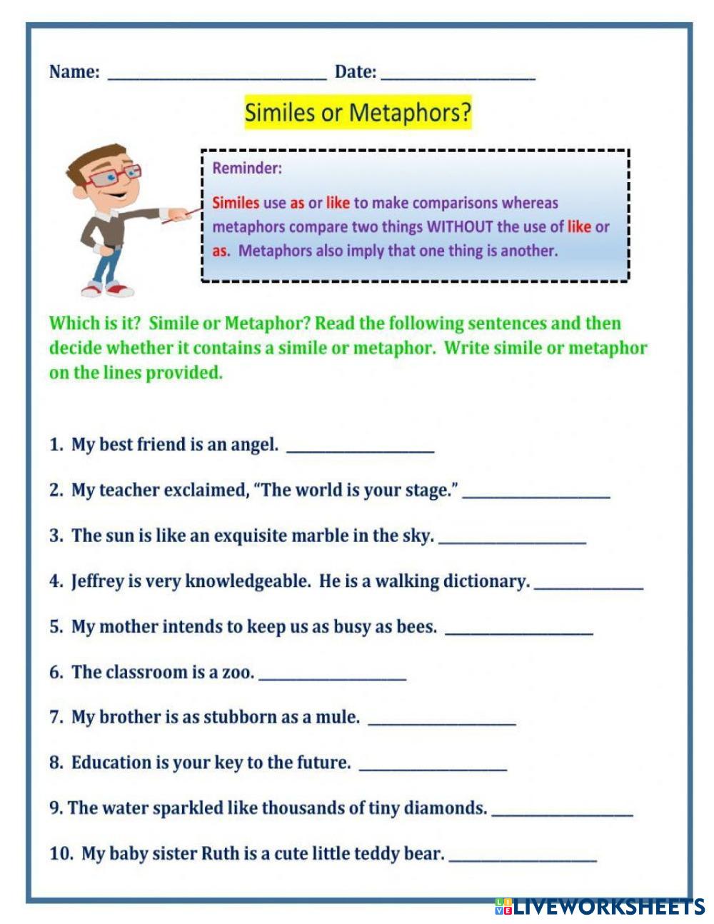 Identify the figure of speech Simile or metaphor, reading comprehension, analogy and vocabulary test.