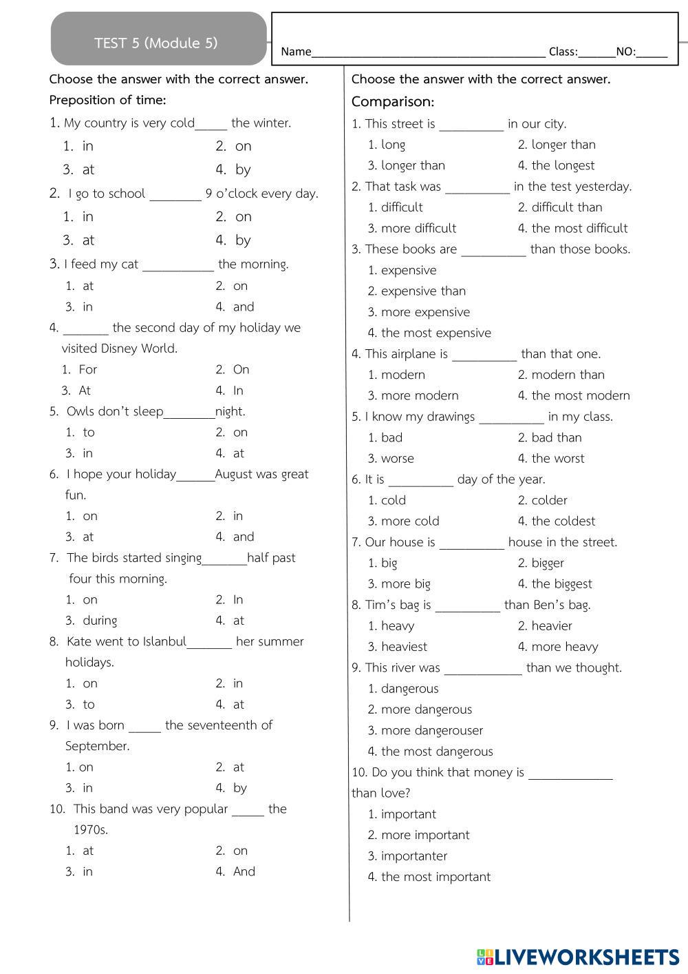 Created byChoruthai Yimyai English English Age 13-14 level: 13 English Author's Instructions My Google Classroom Courses × 0 classes selected (0 students total) Quick Access Select all classes (0 classes) All Classes Loading courses... Cancel Share Share to selected Course __COURSE_NAME__ __STUDENT_NAME__ (__STUDENT_EMAIL__) Module 5 Test Download Worksheet Validation Check my answers Emails my answers to my teacher Full name Group/level School subject Teacher's email or key code Close Submit Validating worksheet... (12) Your answers have been sent to your teacher. Good luck! OK We encountered an error submitting your answers. Please try again. OK Advertisement | Go Ad Free Created byChoruthai Yimyai English English Age 13-14 level: 13 English Author's Instructions