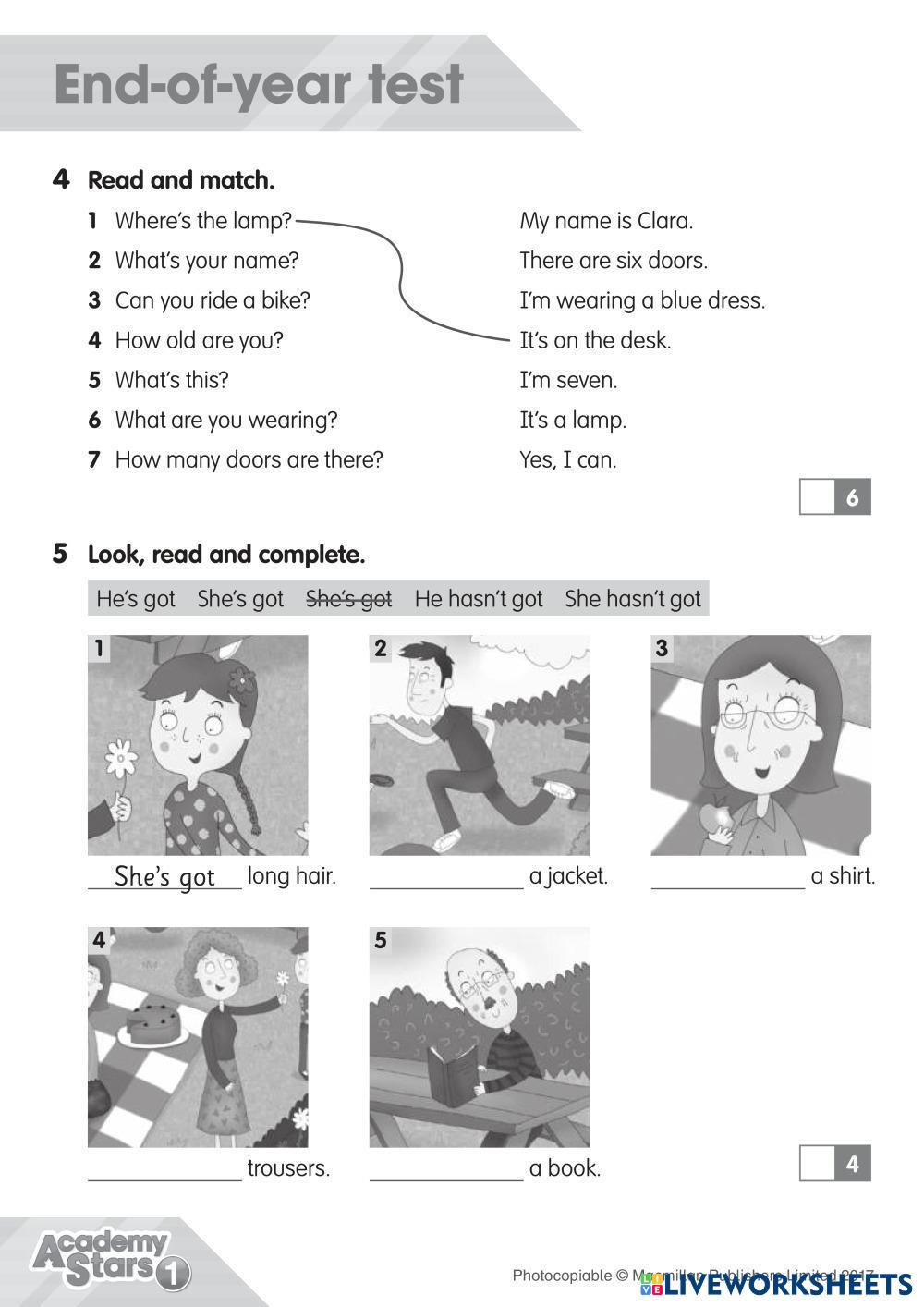 Created by Lolly_language1012 English Test Age 7-11 level: A2 English Author's Instructions My Google Classroom Courses × 0 classes selected (0 students total) Quick Access Select all classes (0 classes) All Classes Loading courses... Cancel Share Share to selected Course __COURSE_NAME__ __STUDENT_NAME__ (__STUDENT_EMAIL__) End of a year test (2nd grade) ( final test) Download Worksheet Validation Check my answers Emails my answers to my teacher Full name Group/level School subject Teacher's email or key code Close Submit Validating worksheet... (12) Your answers have been sent to your teacher. Good luck! OK We encountered an error submitting your answers. Please try again. OK Advertisement | Go Ad Free Created by Lolly_language1012 English Test Age 7-11 level: A2 English Author's Instructions