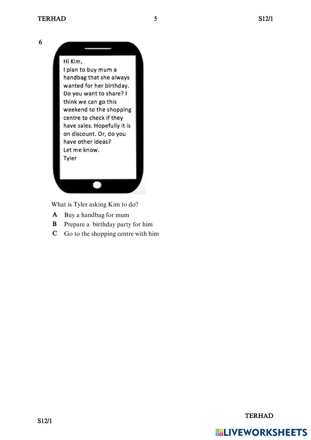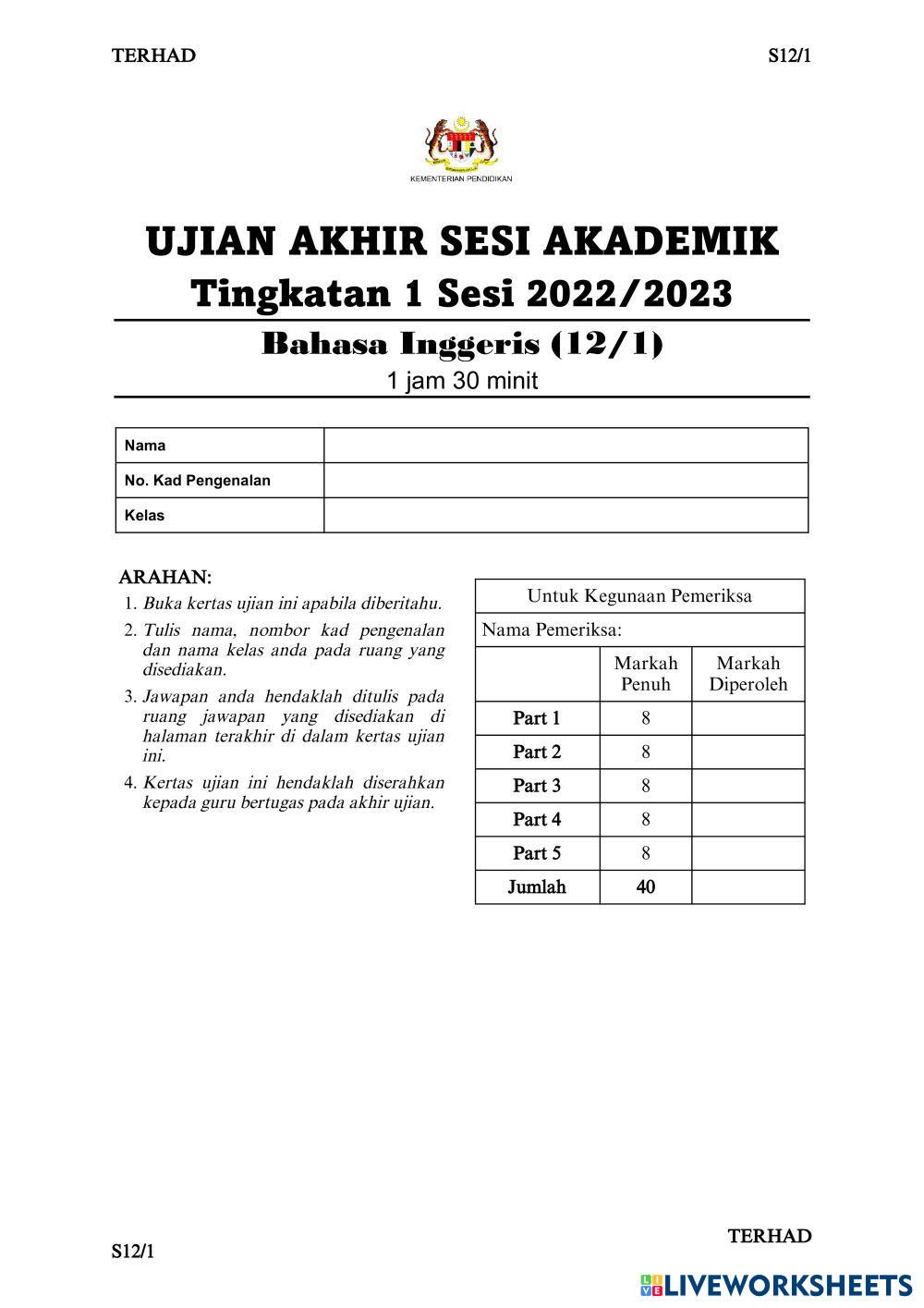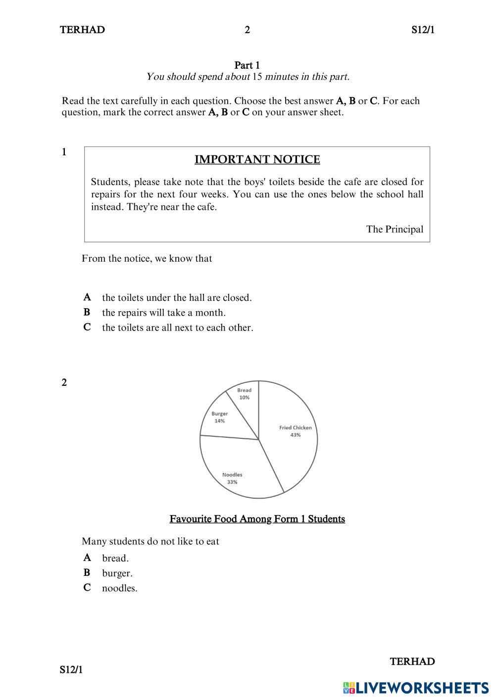 Created byNUR SABRINA NAJAT BINTI KHAIRUL ANWAR English Reading comprehension Age 13-17 level: Intermediate English Author's Instructions My Google Classroom Courses × 0 classes selected (0 students total) Quick Access Select all classes (0 classes) All Classes Loading courses... Cancel Share Share to selected Course __COURSE_NAME__ __STUDENT_NAME__ (__STUDENT_EMAIL__) FORM 1 ENGLISH PAPER 1 REVISION Download Worksheet Validation Check my answers Emails my answers to my teacher Full name Group/level School subject Teacher's email or key code Close Submit Validating worksheet... (12) Your answers have been sent to your teacher. Good luck! OK We encountered an error submitting your answers. Please try again. OK Advertisement | Go Ad Free Created byNUR SABRINA NAJAT BINTI KHAIRUL ANWAR English Reading comprehension Age 13-17 level: Intermediate English Author's Instructions