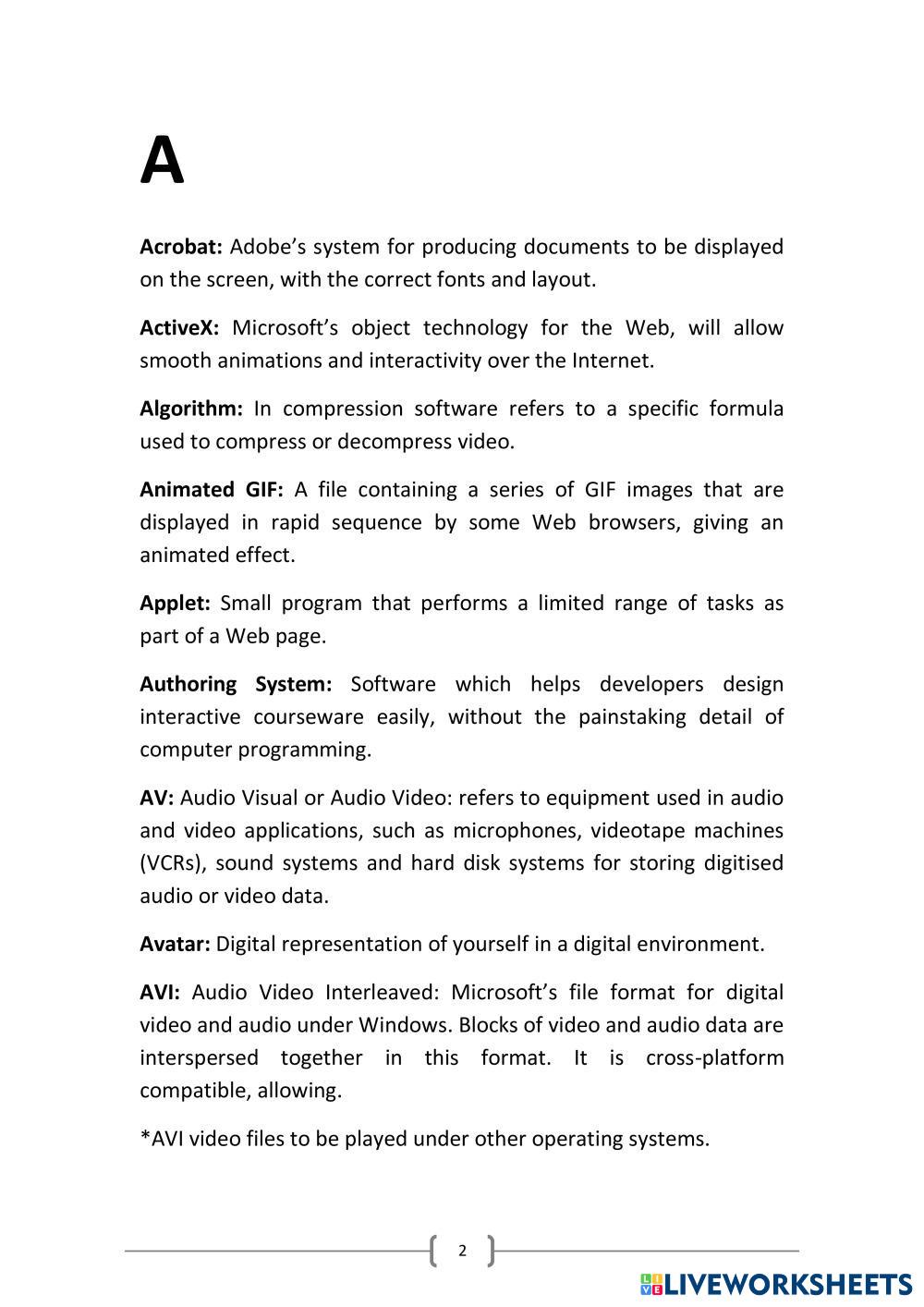 Created byIrina English English glossary Age 15+ level: 15+ English Author's Instructions My Google Classroom Courses × 0 classes selected (0 students total) Quick Access Select all classes (0 classes) All Classes Loading courses... Cancel Share Share to selected Course __COURSE_NAME__ __STUDENT_NAME__ (__STUDENT_EMAIL__) Multimedia glossary Download Worksheet Validation Check my answers Emails my answers to my teacher Full name Group/level School subject Teacher's email or key code Close Submit Validating worksheet... (12) Your answers have been sent to your teacher. Good luck! OK We encountered an error submitting your answers. Please try again. OK Advertisement | Go Ad Free Created byIrina English English glossary Age 15+ level: 15+ English Author's Instructions