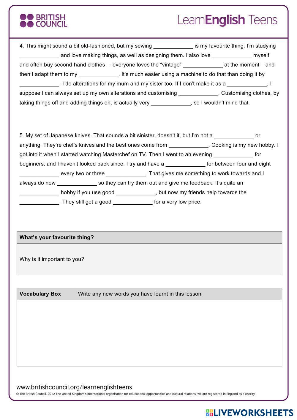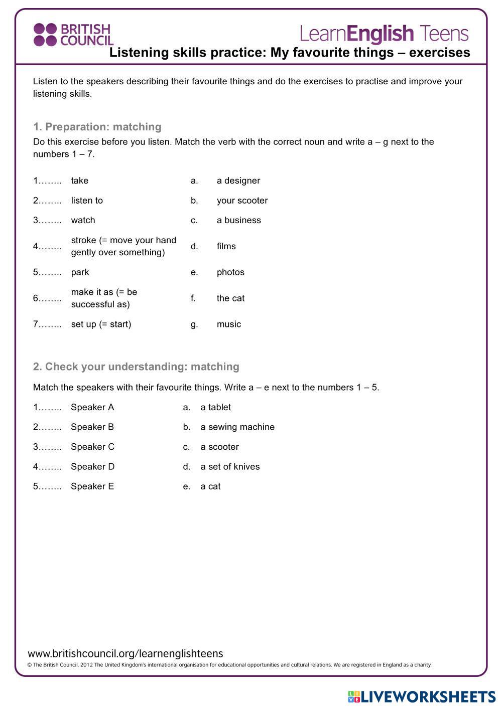 Listen to the speakers describing their favourite things and do the exercises to practise and improve your listening skills.