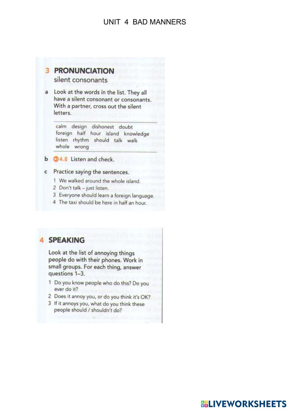 Created byMISS LAURA English modals verbs Age 18+ level: b1 English Author's Instructions My Google Classroom Courses × 0 classes selected (0 students total) Quick Access Select all classes (0 classes) All Classes Loading courses... Cancel Share Share to selected Course __COURSE_NAME__ __STUDENT_NAME__ (__STUDENT_EMAIL__) BAD MANNERS 1 A Download Worksheet Validation Check my answers Emails my answers to my teacher Full name Group/level School subject Teacher's email or key code Close Submit Validating worksheet... (12) Your answers have been sent to your teacher. Good luck! OK We encountered an error submitting your answers. Please try again. OK Advertisement | Go Ad Free Created byMISS LAURA English modals verbs Age 18+ level: b1 English Author's Instructions