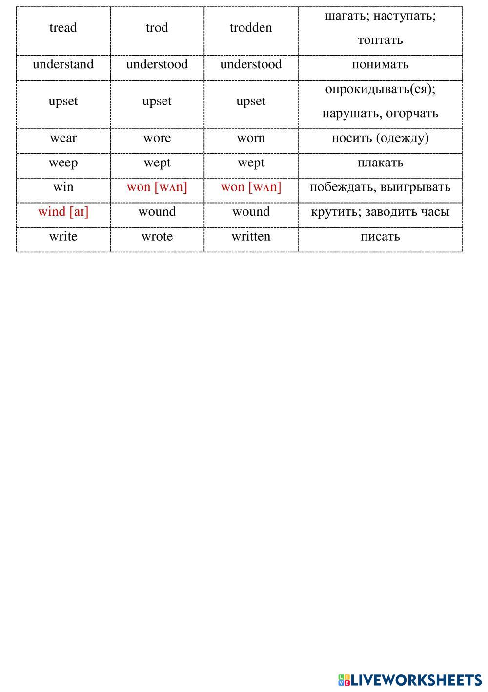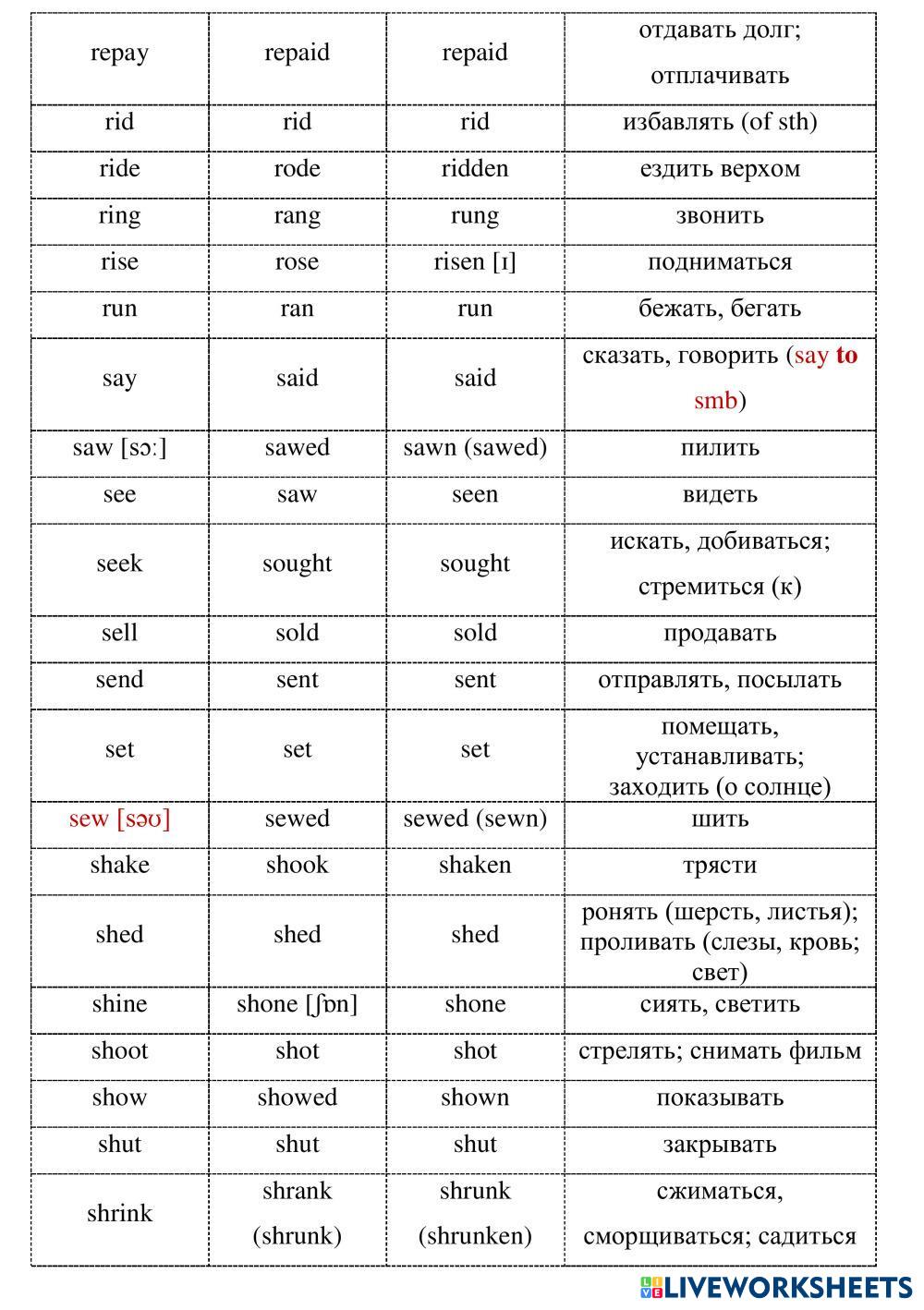 3 forms of irregular verbs