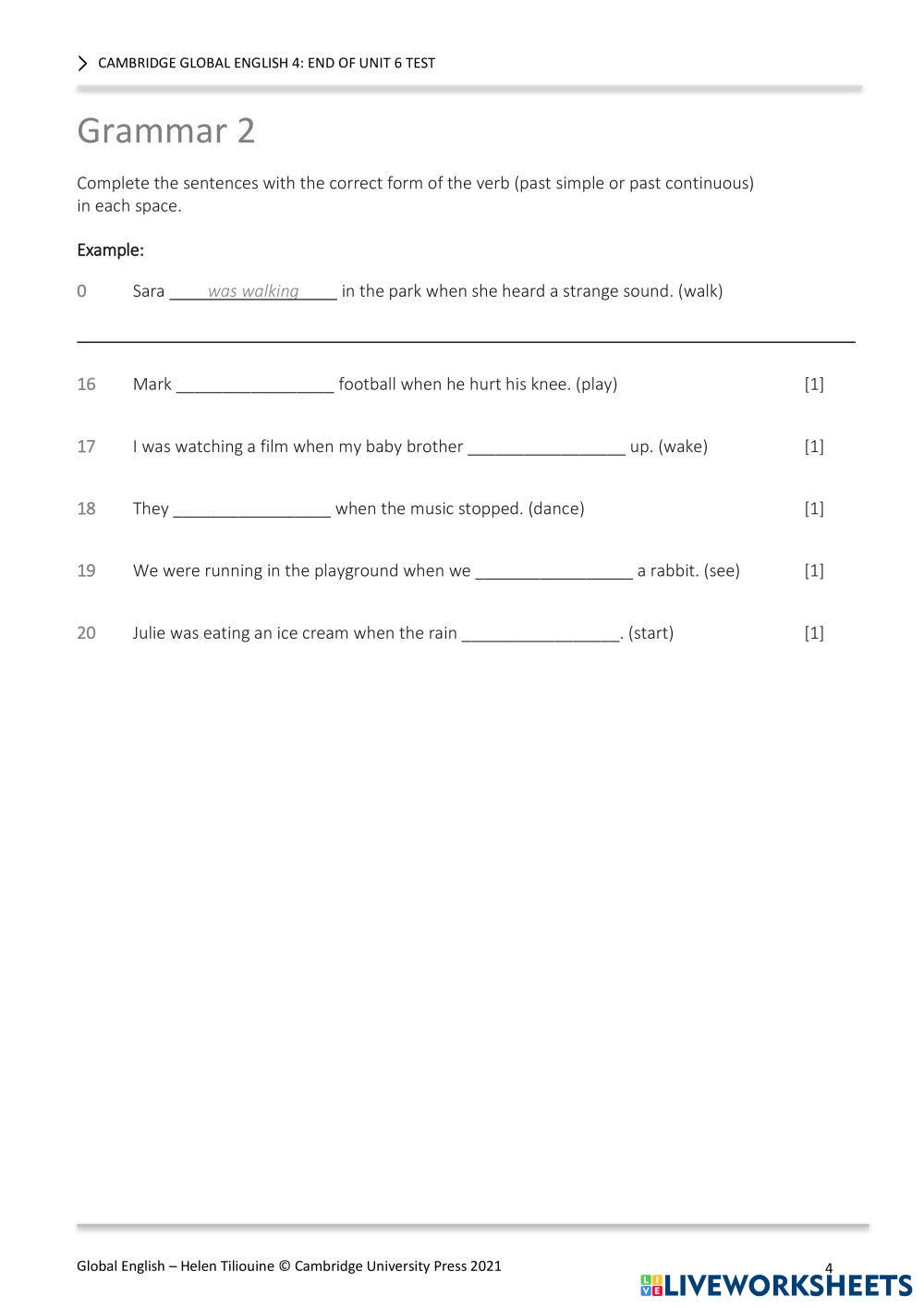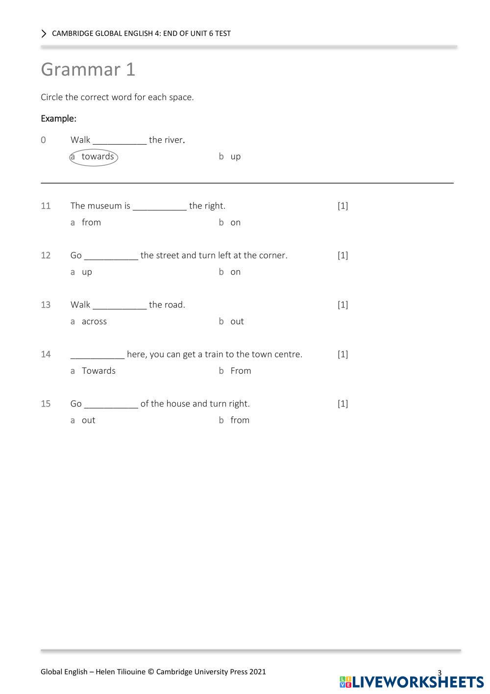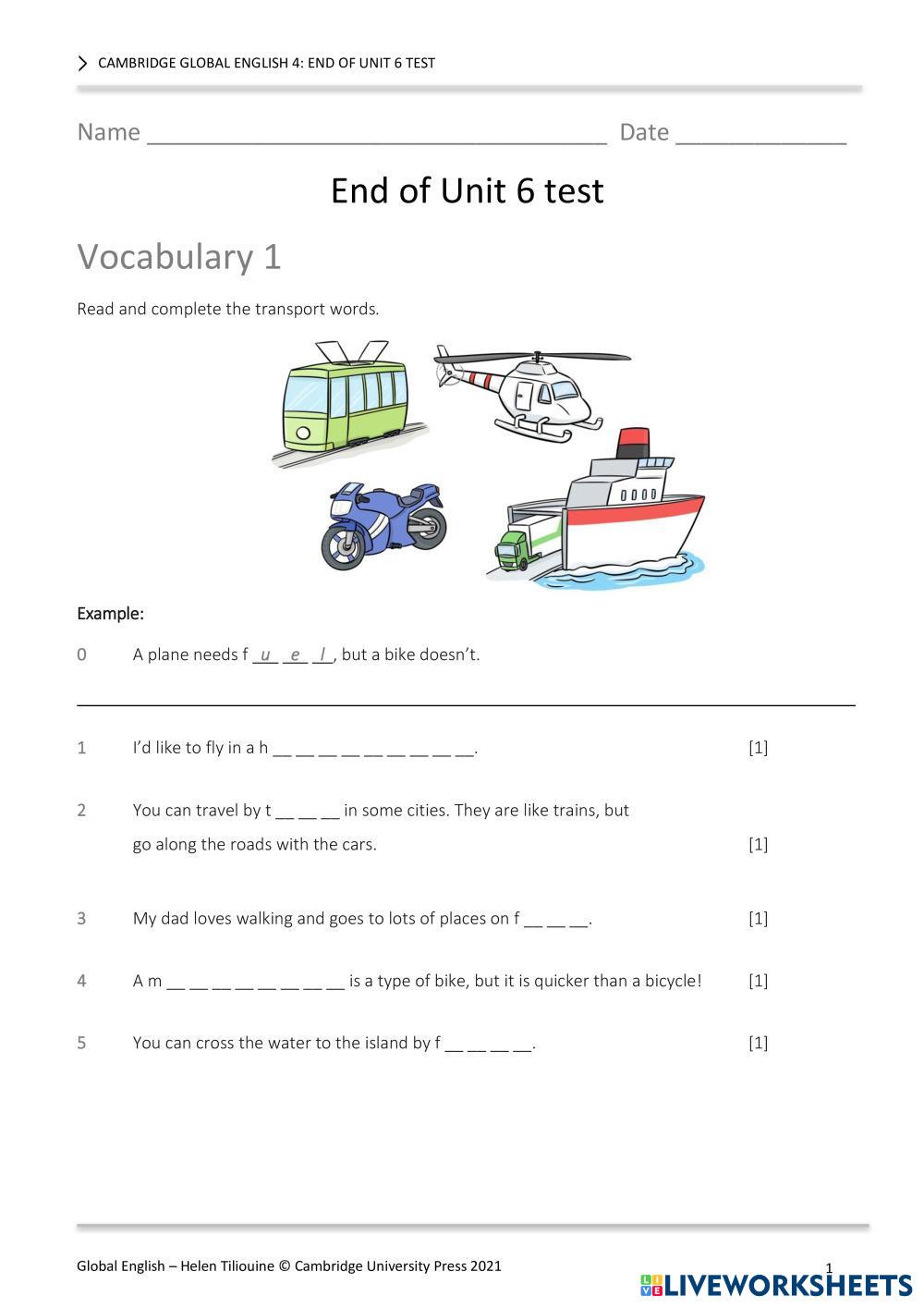Created byLe Thi Hoa Quynh English Going places Age 9-13 level: 4 English Author's Instructions My Google Classroom Courses × 0 classes selected (0 students total) Quick Access Select all classes (0 classes) All Classes Loading courses... Cancel Share Share to selected Course __COURSE_NAME__ __STUDENT_NAME__ (__STUDENT_EMAIL__) CGE4_End of Unit 6 test Download Worksheet Validation Check my answers Emails my answers to my teacher Full name Group/level School subject Teacher's email or key code Close Submit Validating worksheet... (12) Your answers have been sent to your teacher. Good luck! OK We encountered an error submitting your answers. Please try again. OK Advertisement | Go Ad Free Created byLe Thi Hoa Quynh English Going places Age 9-13 level: 4 English Author's Instructions