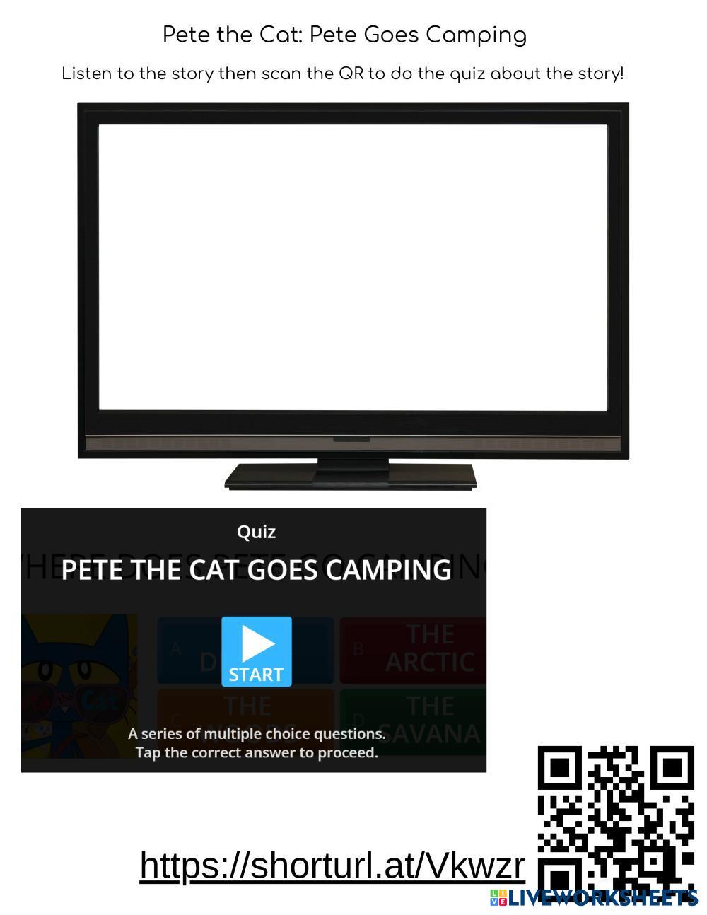 Created byMariah Jacobs English comprehension Age 7-13 level: 3 English Author's Instructions My Google Classroom Courses × 0 classes selected (0 students total) Quick Access Select all classes (0 classes) All Classes Loading courses... Cancel Share Share to selected Course __COURSE_NAME__ __STUDENT_NAME__ (__STUDENT_EMAIL__) Pete the Cat: Pete Goes Camping Read Aloud and Quiz Download Worksheet Validation Check my answers Emails my answers to my teacher Full name Group/level School subject Teacher's email or key code Close Submit Validating worksheet... (12) Your answers have been sent to your teacher. Good luck! OK We encountered an error submitting your answers. Please try again. OK Advertisement | Go Ad Free Created byMariah Jacobs English comprehension Age 7-13 level: 3 English Author's Instructions