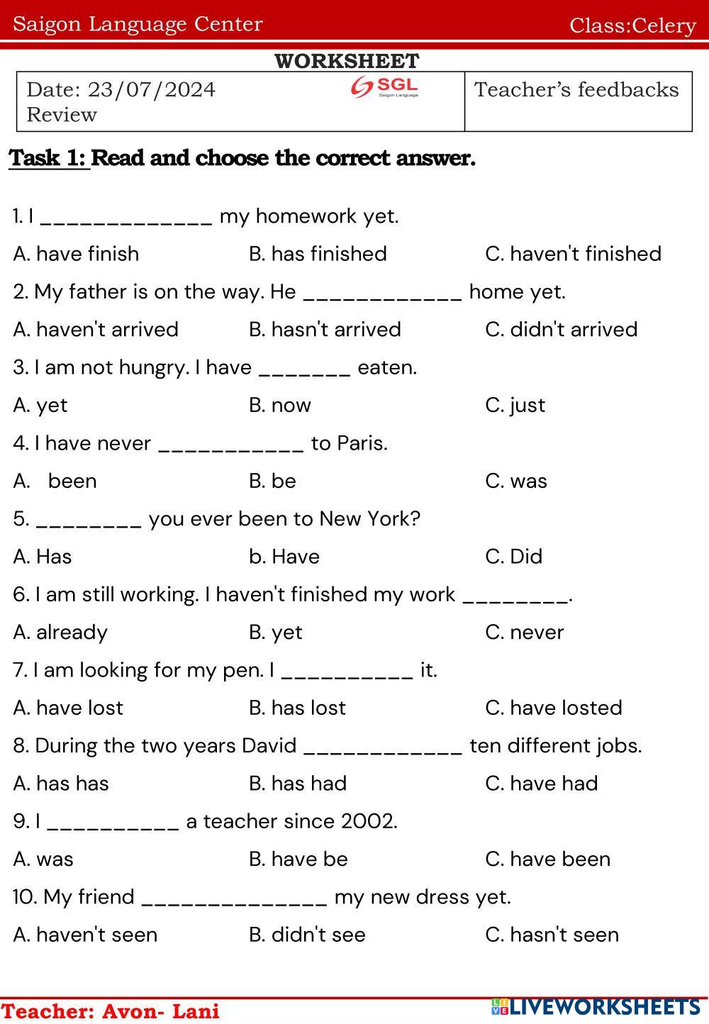 Created byNguyễn Thị ThanhThao english english Age 10-15 level: ffs4 English Author's Instructions english My Google Classroom Courses × 0 classes selected (0 students total) Quick Access Select all classes (0 classes) All Classes Loading courses... Cancel Share Share to selected Course __COURSE_NAME__ __STUDENT_NAME__ (__STUDENT_EMAIL__) Celery Download Worksheet Validation Check my answers Emails my answers to my teacher Full name Group/level School subject Teacher's email or key code Close Submit Validating worksheet... (12) Your answers have been sent to your teacher. Good luck! OK We encountered an error submitting your answers. Please try again. OK Advertisement | Go Ad Free Created byNguyễn Thị ThanhThao english english Age 10-15 level: ffs4 English Author's Instructions english