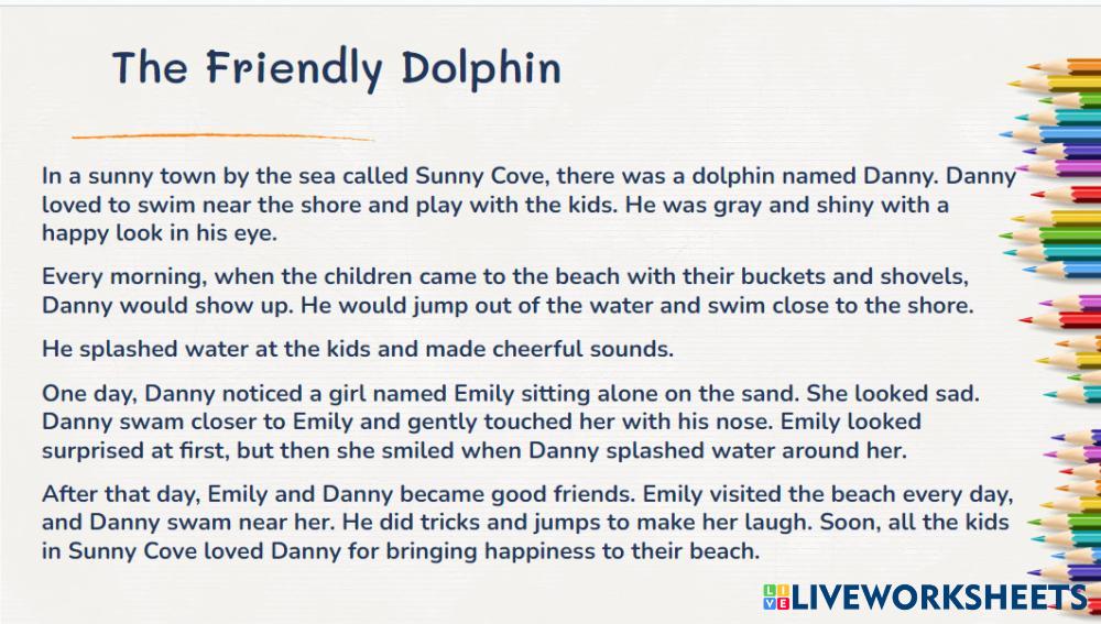 Answer the questions about the reading "The Friendly Dolphin"