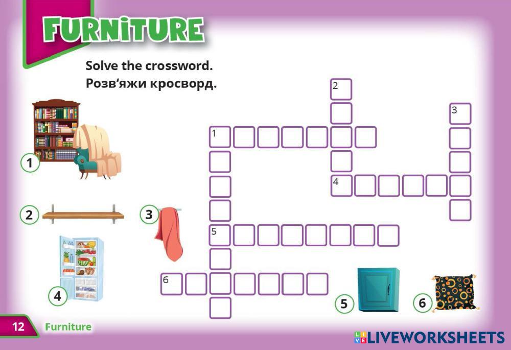 Created byКсенія Анатоліївна English NEW WORDS Age 8-13 level: A English Author's Instructions My Google Classroom Courses × 0 classes selected (0 students total) Quick Access Select all classes (0 classes) All Classes Loading courses... Cancel Share Share to selected Course __COURSE_NAME__ __STUDENT_NAME__ (__STUDENT_EMAIL__) Furniture Download Worksheet Validation Check my answers Emails my answers to my teacher Full name Group/level School subject Teacher's email or key code Close Submit Validating worksheet... (12) Your answers have been sent to your teacher. Good luck! OK We encountered an error submitting your answers. Please try again. OK Advertisement | Go Ad Free Created byКсенія Анатоліївна English NEW WORDS Age 8-13 level: A English Author's Instructions
