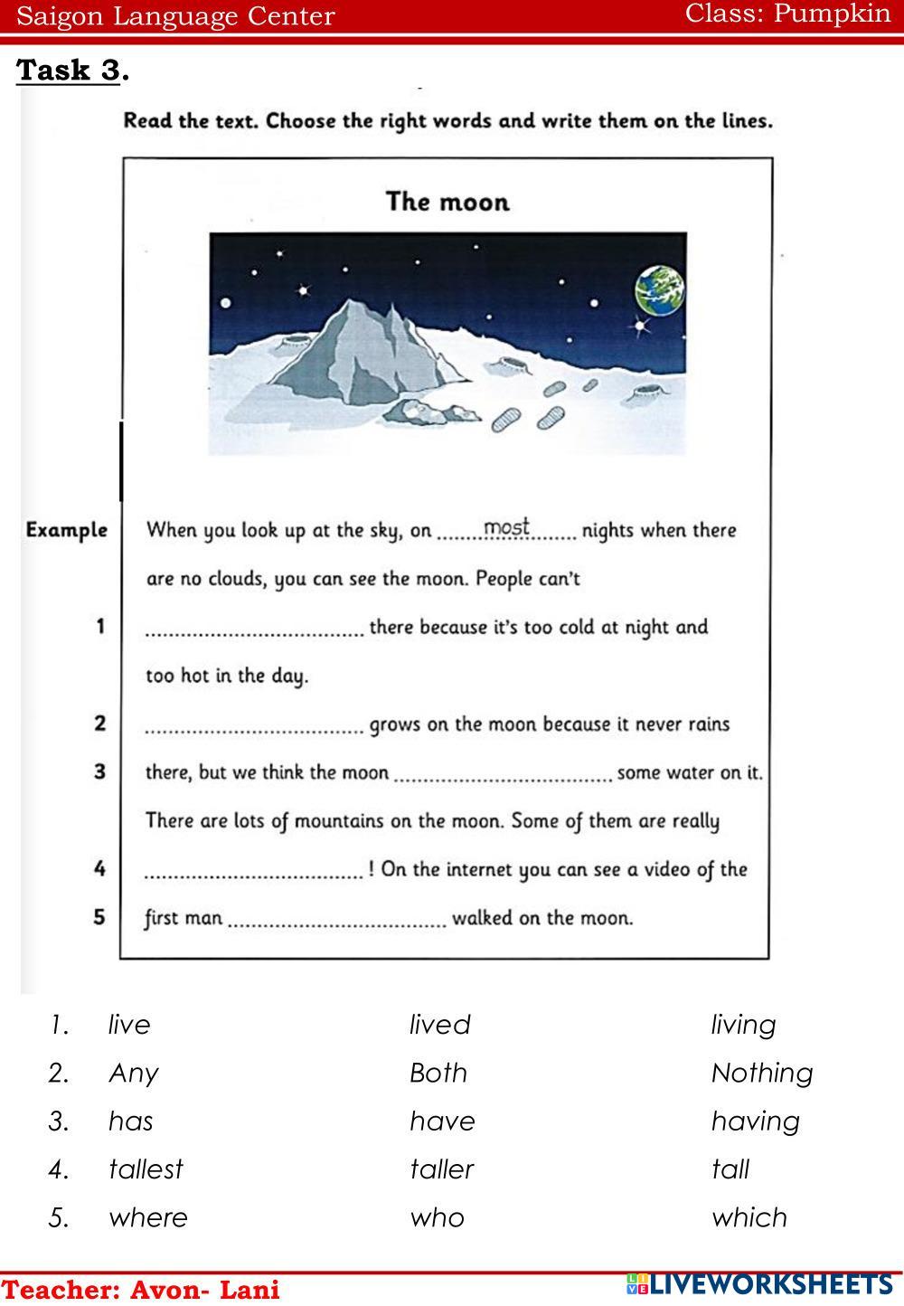 Created byNguyễn Thị ThanhThao english e Age 10-16 level: ffs3 English Author's Instructions e My Google Classroom Courses × 0 classes selected (0 students total) Quick Access Select all classes (0 classes) All Classes Loading courses... Cancel Share Share to selected Course __COURSE_NAME__ __STUDENT_NAME__ (__STUDENT_EMAIL__) Pumpkin 26.112024 Download Worksheet Validation Check my answers Emails my answers to my teacher Full name Group/level School subject Teacher's email or key code Close Submit Validating worksheet... (12) Your answers have been sent to your teacher. Good luck! OK We encountered an error submitting your answers. Please try again. OK Advertisement | Go Ad Free Created byNguyễn Thị ThanhThao english e Age 10-16 level: ffs3 English Author's Instructions e