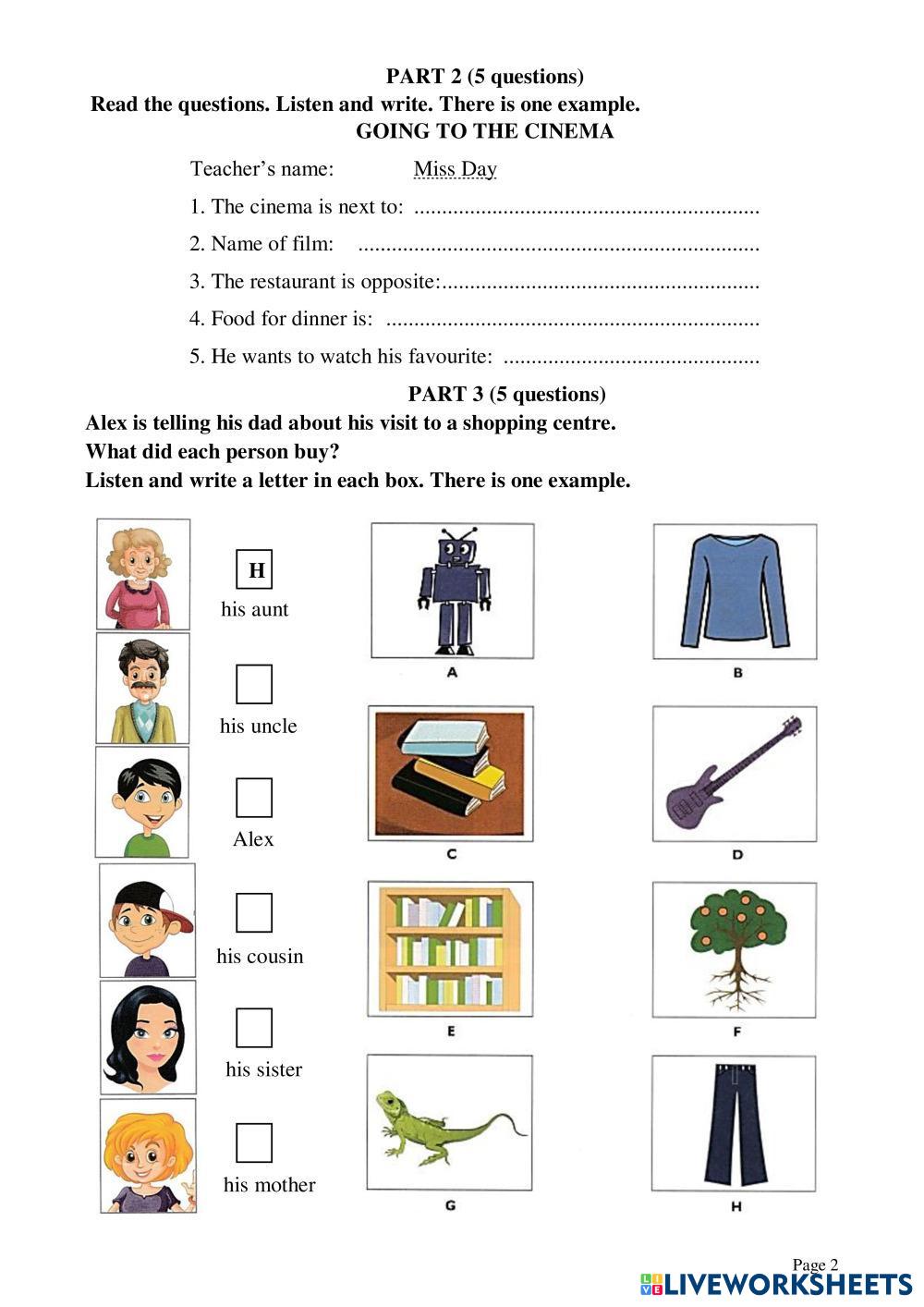 Created byEnglish English Movers Listening Test Age 6-14 level: A2 English Author's Instructions My Google Classroom Courses × 0 classes selected (0 students total) Quick Access Select all classes (0 classes) All Classes Loading courses... Cancel Share Share to selected Course __COURSE_NAME__ __STUDENT_NAME__ (__STUDENT_EMAIL__) Entrance Test 1 - Movers Download Worksheet Validation Check my answers Emails my answers to my teacher Full name Group/level School subject Teacher's email or key code Close Submit Validating worksheet... (12) Your answers have been sent to your teacher. Good luck! OK We encountered an error submitting your answers. Please try again. OK Advertisement | Go Ad Free Created byEnglish English Movers Listening Test Age 6-14 level: A2 English Author's Instructions