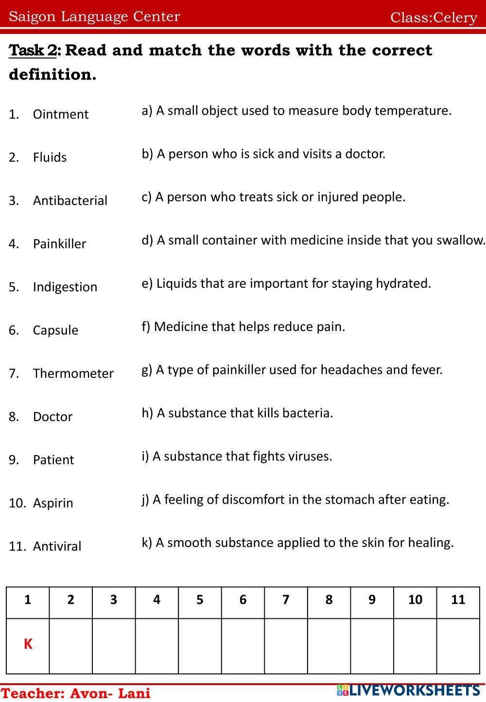 Created byNguyễn Thị ThanhThao english e Age 9+ level: ffs1 English Author's Instructions e My Google Classroom Courses × 0 classes selected (0 students total) Quick Access Select all classes (0 classes) All Classes Loading courses... Cancel Share Share to selected Course __COURSE_NAME__ __STUDENT_NAME__ (__STUDENT_EMAIL__) Celery Download Worksheet Validation Check my answers Emails my answers to my teacher Full name Group/level School subject Teacher's email or key code Close Submit Validating worksheet... (12) Your answers have been sent to your teacher. Good luck! OK We encountered an error submitting your answers. Please try again. OK Advertisement | Go Ad Free Created byNguyễn Thị ThanhThao english e Age 9+ level: ffs1 English Author's Instructions e