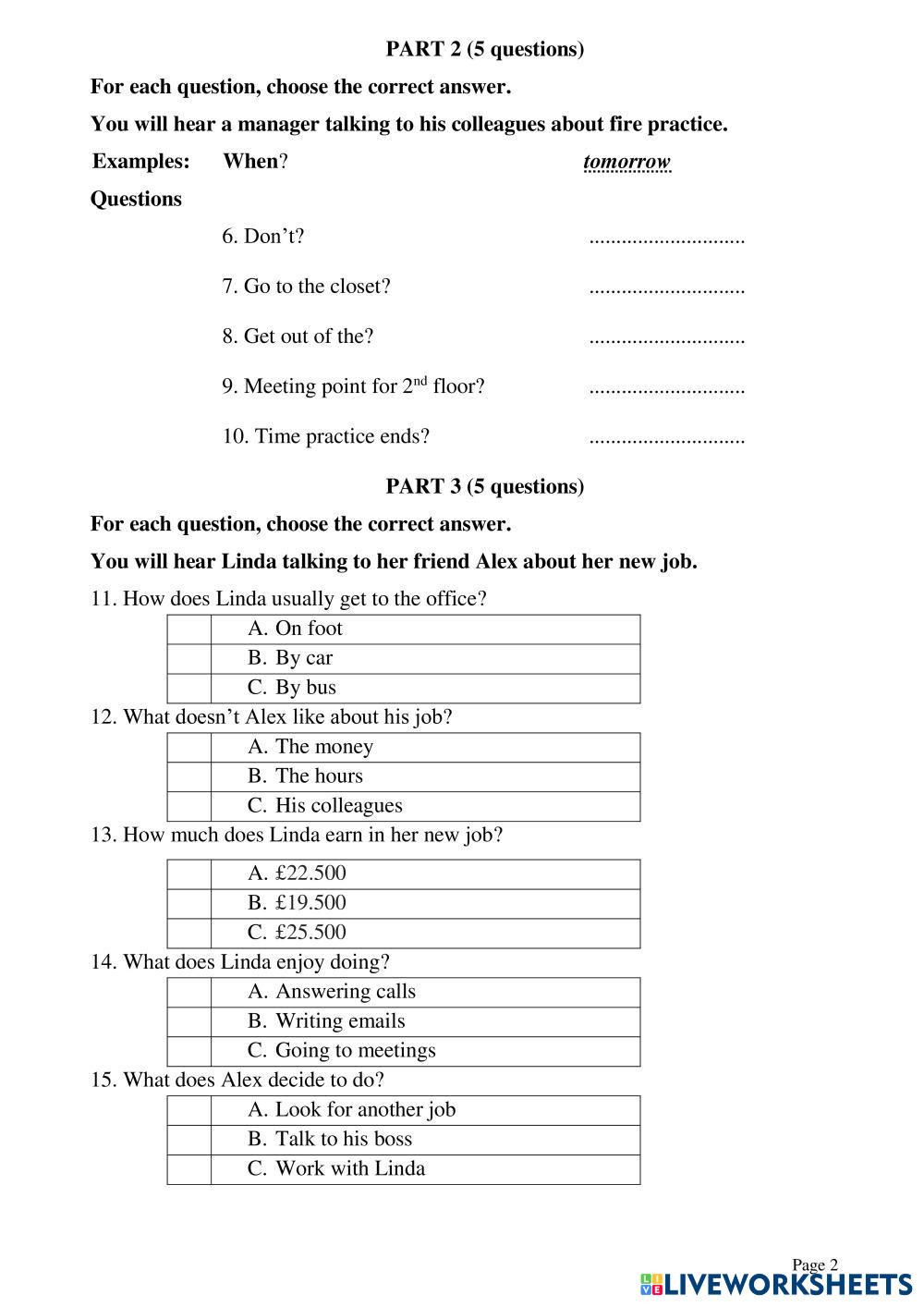 Created byEnglish English KET listening test Age 6-15 level: Pre-A1 English Author's Instructions My Google Classroom Courses × 0 classes selected (0 students total) Quick Access Select all classes (0 classes) All Classes Loading courses... Cancel Share Share to selected Course __COURSE_NAME__ __STUDENT_NAME__ (__STUDENT_EMAIL__) KET LISTENING TEST 05 Download Worksheet Validation Check my answers Emails my answers to my teacher Full name Group/level School subject Teacher's email or key code Close Submit Validating worksheet... (12) Your answers have been sent to your teacher. Good luck! OK We encountered an error submitting your answers. Please try again. OK Advertisement | Go Ad Free Created byEnglish English KET listening test Age 6-15 level: Pre-A1 English Author's Instructions