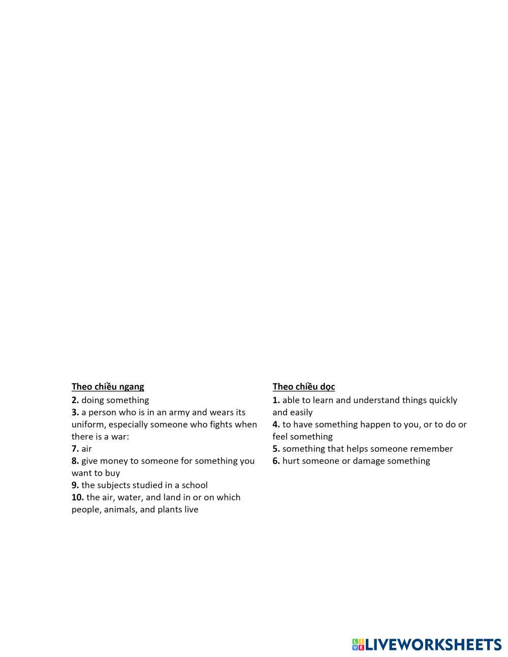 Created by thaothao210893 English CROSSWORD Age 10-16 level: grade 8 English Author's Instructions My Google Classroom Courses × 0 classes selected (0 students total) Quick Access Select all classes (0 classes) All Classes Loading courses... Cancel Share Share to selected Course __COURSE_NAME__ __STUDENT_NAME__ (__STUDENT_EMAIL__) Crosswords Download Worksheet Validation Check my answers Emails my answers to my teacher Full name Group/level School subject Teacher's email or key code Close Submit Validating worksheet... (12) Your answers have been sent to your teacher. Good luck! OK We encountered an error submitting your answers. Please try again. OK Advertisement | Go Ad Free Created by thaothao210893 English CROSSWORD Age 10-16 level: grade 8 English Author's Instructions