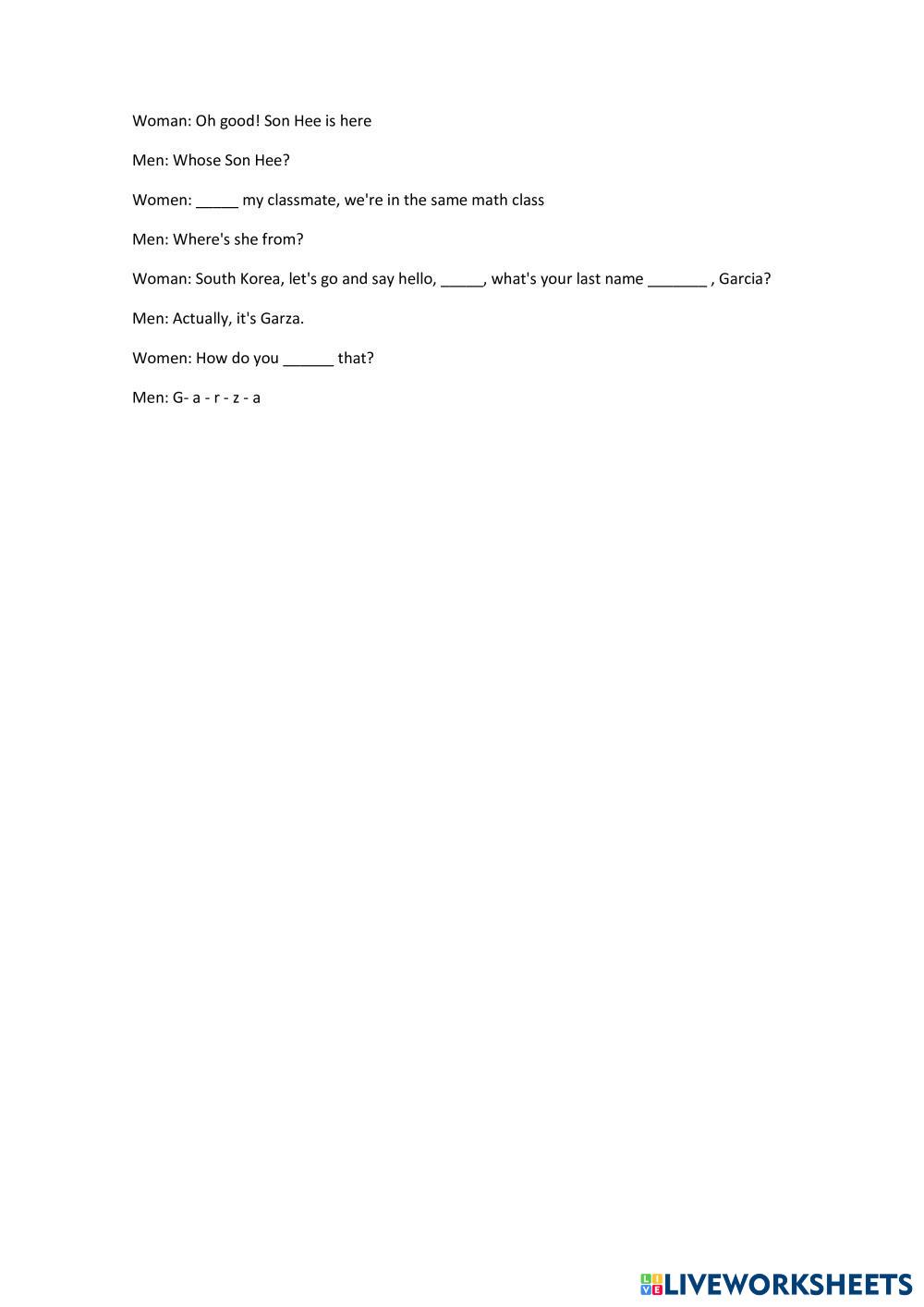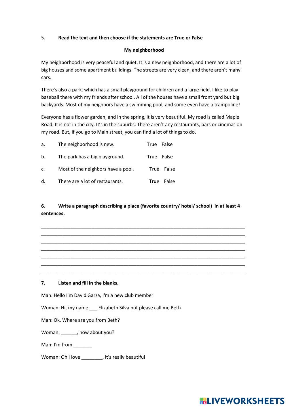 Created by EstefaniaMunzon Enlgish English Age 13+ level: A2 to B1 English Author's Instructions My Google Classroom Courses × 0 classes selected (0 students total) Quick Access Select all classes (0 classes) All Classes Loading courses... Cancel Share Share to selected Course __COURSE_NAME__ __STUDENT_NAME__ (__STUDENT_EMAIL__) 1ero - English exam Download Worksheet Validation Check my answers Emails my answers to my teacher Full name Group/level School subject Teacher's email or key code Close Submit Validating worksheet... (12) Your answers have been sent to your teacher. Good luck! OK We encountered an error submitting your answers. Please try again. OK Advertisement | Go Ad Free Created by EstefaniaMunzon Enlgish English Age 13+ level: A2 to B1 English Author's Instructions