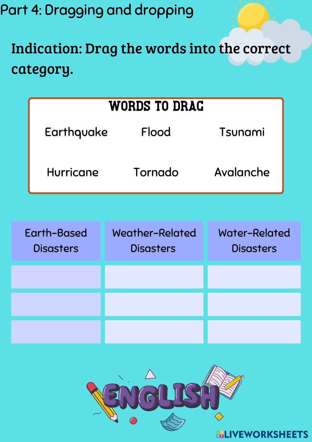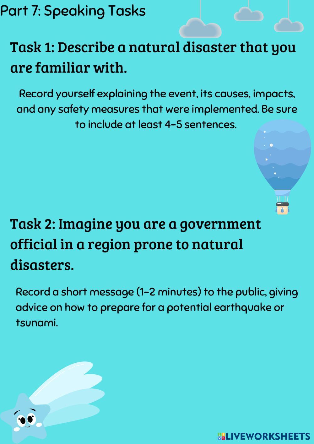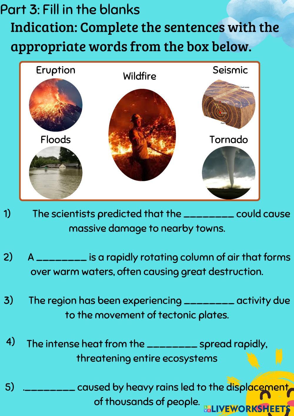 This is a worksheet to think and learn more about natural disaster, read carefully.