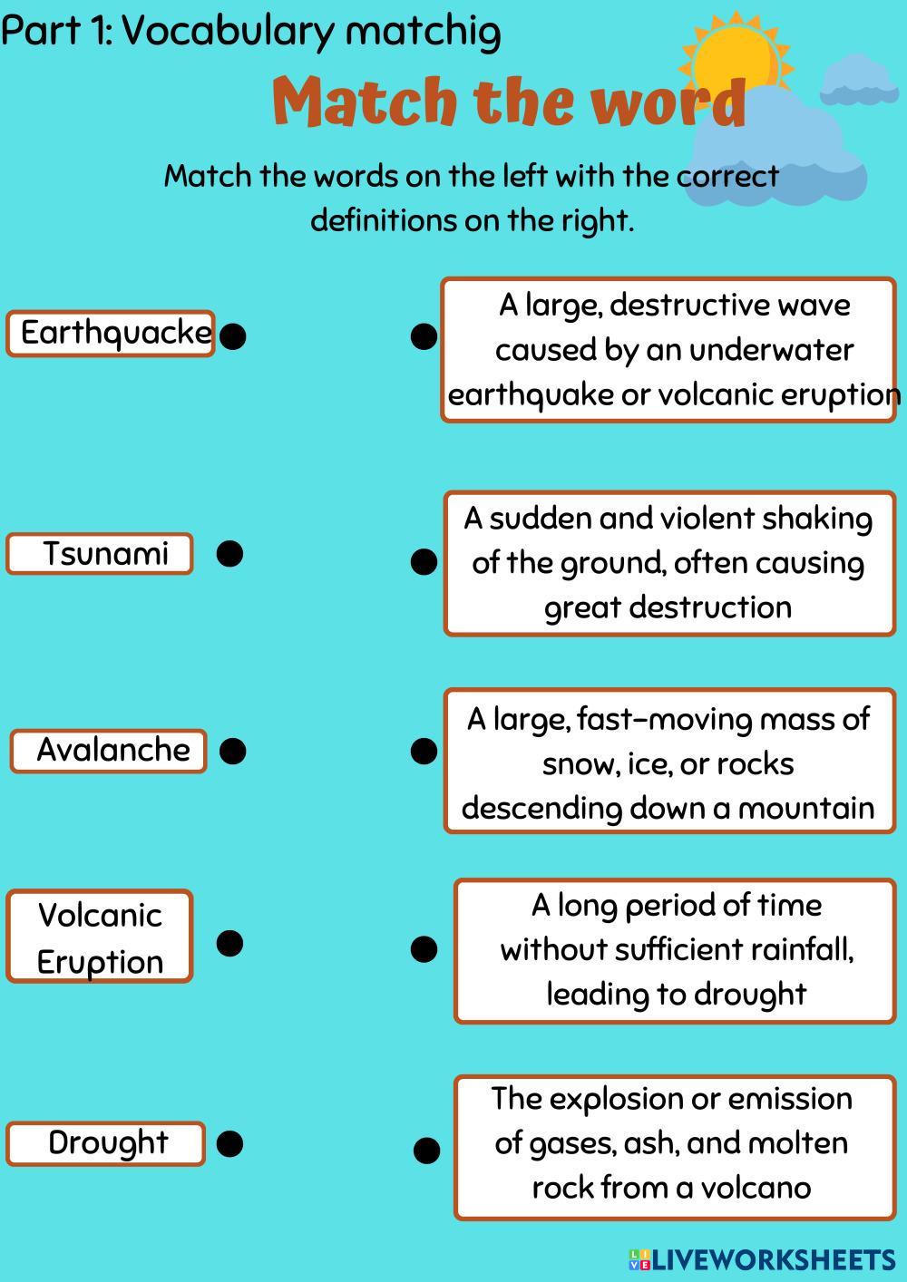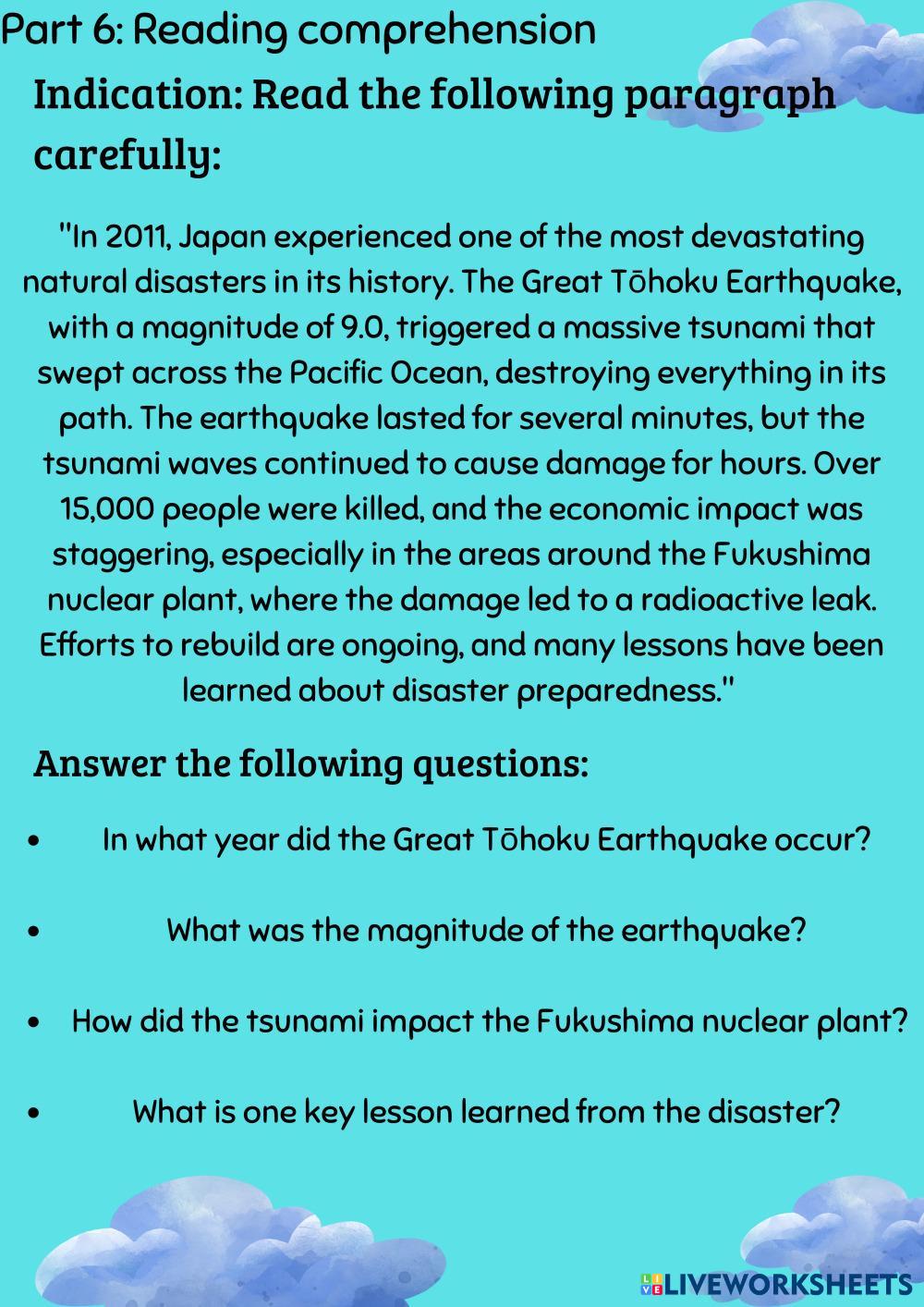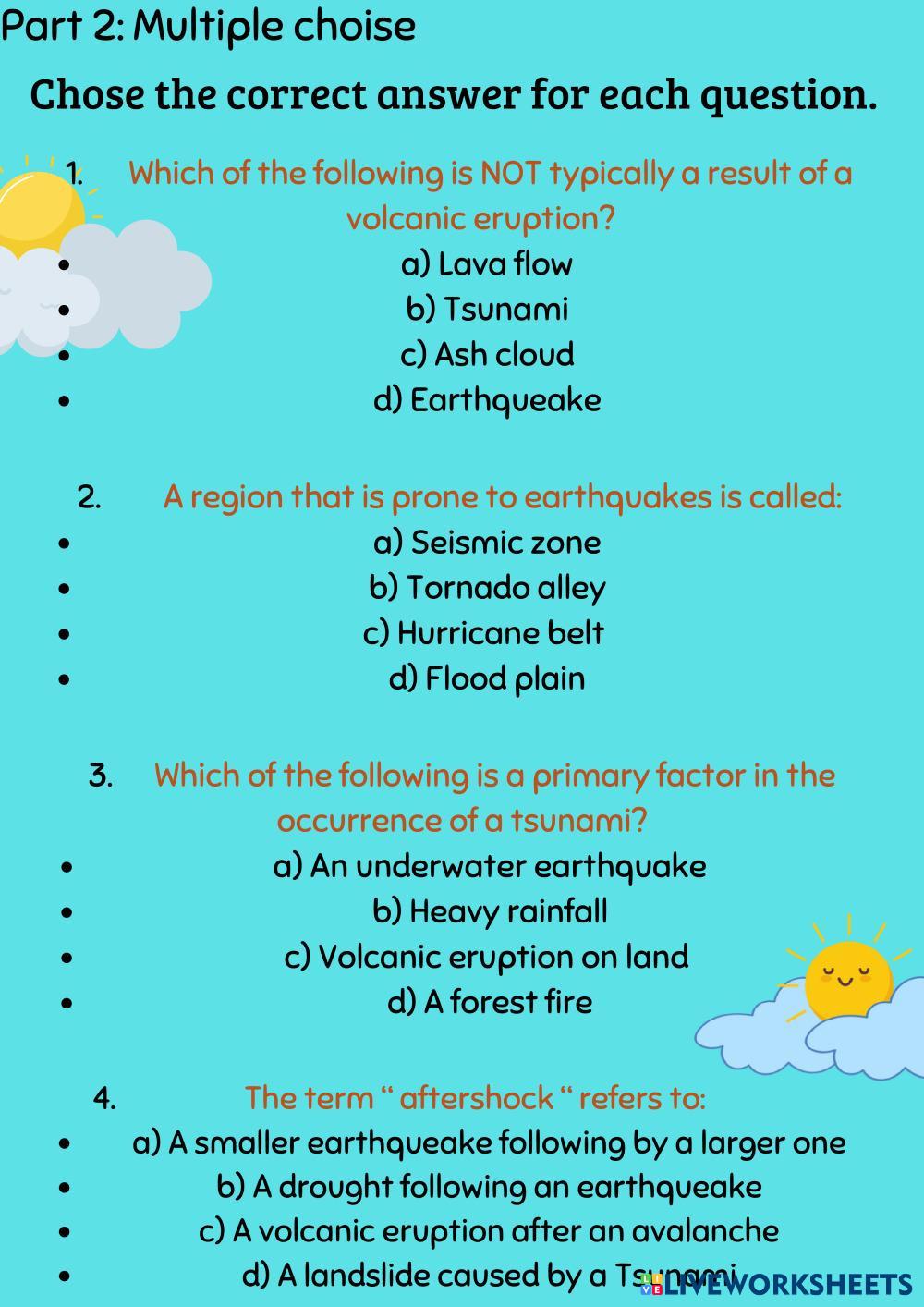 This is a worksheet to think and learn more about natural disaster, read carefully.