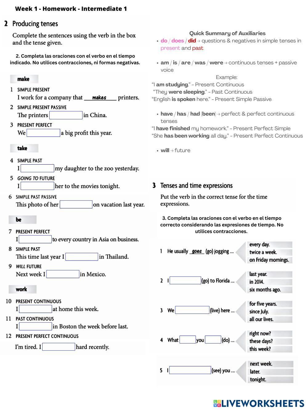 Created by Martha_IP ESL English B1 Grammar English Author's Instructions Read the instructions and complete each exercise. My Google Classroom Courses × 0 classes selected (0 students total) Quick Access Select all classes (0 classes) All Classes Loading courses... Cancel Share Share to selected Course __COURSE_NAME__ __STUDENT_NAME__ (__STUDENT_EMAIL__) 01. IE1. Unit 1 - Homework. Auxiliary Verbs Download Worksheet Validation Check my answers Emails my answers to my teacher Full name Group/level School subject Teacher's email or key code Close Submit Validating worksheet... (12) Your answers have been sent to your teacher. Good luck! OK We encountered an error submitting your answers. Please try again. OK Advertisement | Go Ad Free Created by Martha_IP ESL English B1 Grammar English Author's Instructions Read the instructions and complete each exercise. Explore Worksheets Grammar 2 Unit 25 ESL B1 Grammar 2 Unit 25 Grammar - ESL Grammar 2 Unit 25 Past Simple vs Present Perfect ESL B1 Past Simple vs Present Perfect Grammar - ESL English as a second language by anmafan Main content: Present perfect or past simple Present Simple Tense ESL B1 Present Simple Tense Grammar - ESL Write the correct answer. English as a Second Language Main content: Present Simple Other contents: Subject verb agreement Use of English Parts 1-2 Jobs ESL B1 Use of English Parts 1-2 Jobs Grammar - ESL Read and solve