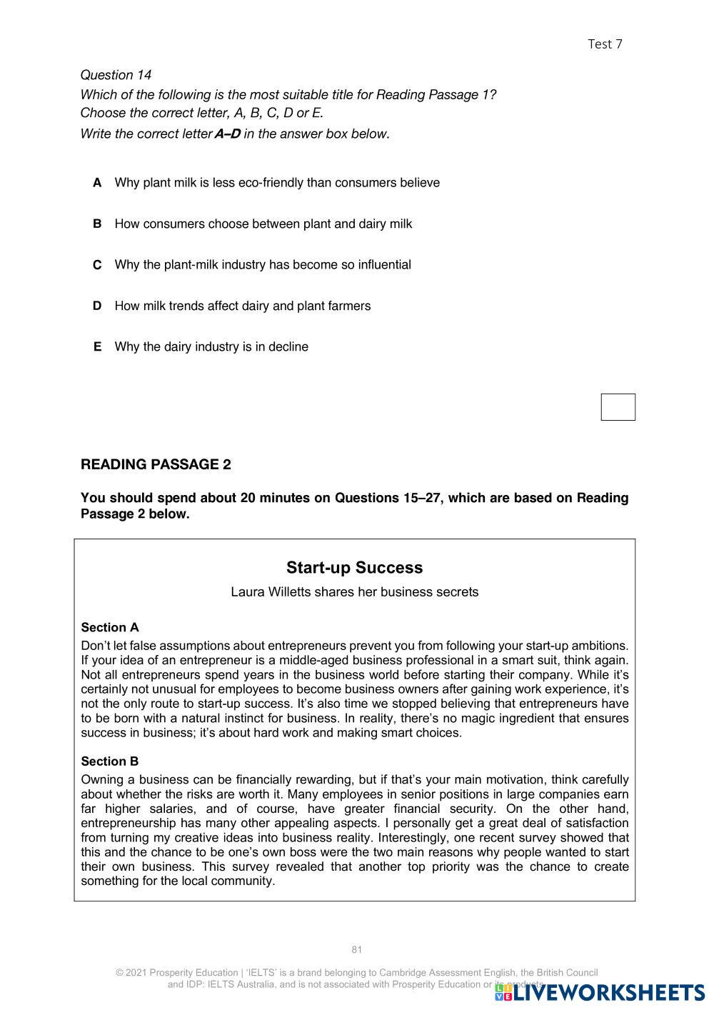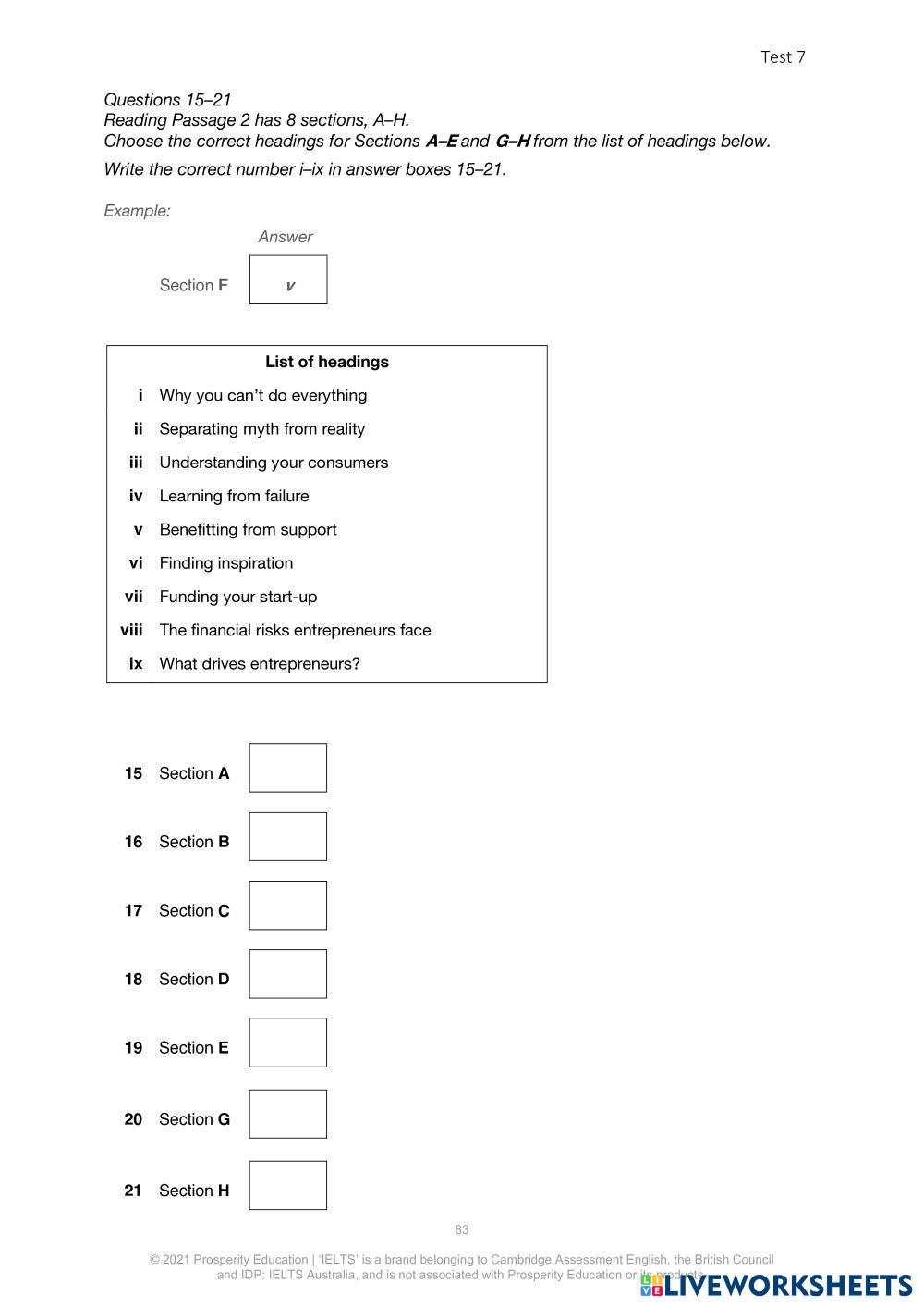 Created byNguyễn Thuý Liên ESL C1 Grammar English Author's Instructions . My Google Classroom Courses × 0 classes selected (0 students total) Quick Access Select all classes (0 classes) All Classes Loading courses... Cancel Share Share to selected Course __COURSE_NAME__ __STUDENT_NAME__ (__STUDENT_EMAIL__) IELTS PROSPERITY - READING 7 Download Worksheet Validation Check my answers Emails my answers to my teacher Full name Group/level School subject Teacher's email or key code Close Submit Validating worksheet... (12) Your answers have been sent to your teacher. Good luck! OK We encountered an error submitting your answers. Please try again. OK Advertisement | Go Ad Free Created byNguyễn Thuý Liên ESL C1 Grammar English Author's Instructions . Explore Worksheets HSG9-2526 ESL C1 HSG9-2526 Grammar - ESL . IELTS_SIMULATION_LISTENING_1 ESL C1 IELTS_SIMULATION_LISTENING_1 Grammar - ESL .. IELTS_SIMULATION_LISTENING_2 ESL C1 IELTS_SIMULATION_LISTENING_2 Grammar - ESL . IELTS_SIMULATION_LISTENING_3 ESL C1 IELTS_SIMULATION_LISTENING_3 Grammar - ESL .