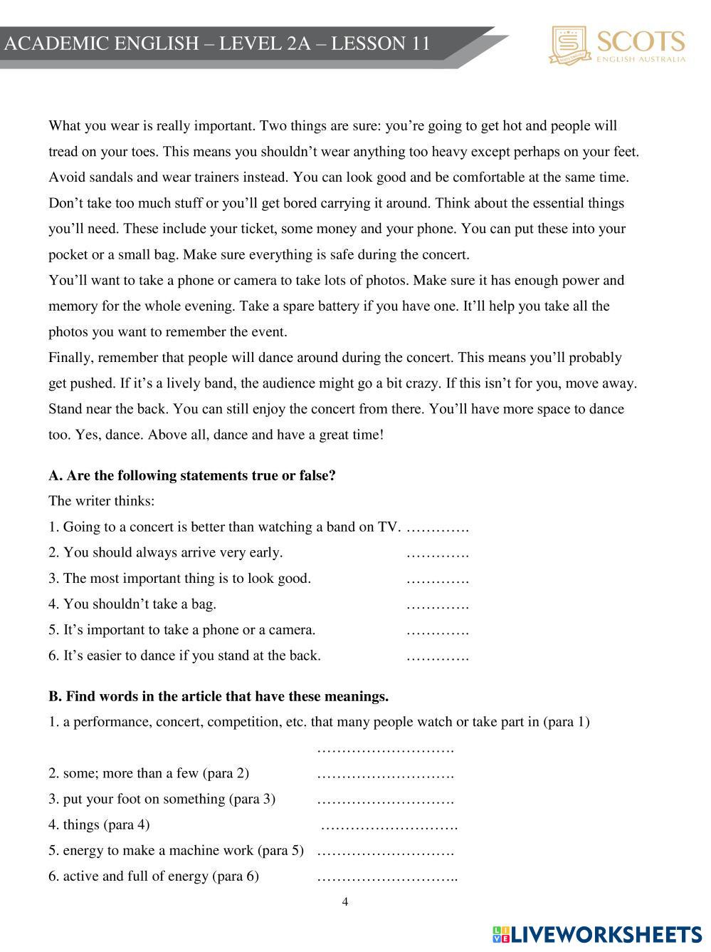 Created byĐạt ESL Vietnamese B1-Intermediate Grammar English Author's Instructions Do homework My Google Classroom Courses × 0 classes selected (0 students total) Quick Access Select all classes (0 classes) All Classes Loading courses... Cancel Share Share to selected Course __COURSE_NAME__ __STUDENT_NAME__ (__STUDENT_EMAIL__) Academic 2A - Session 11 Download Worksheet Validation Check my answers Emails my answers to my teacher Full name Group/level School subject Teacher's email or key code Close Submit Validating worksheet... (12) Your answers have been sent to your teacher. Good luck! OK We encountered an error submitting your answers. Please try again. OK Advertisement | Go Ad Free Created byĐạt ESL Vietnamese B1-Intermediate Grammar English Author's Instructions Do homework Explore Worksheets GS_11_revision_U1-2_test 2 ESL B1-Intermediate GS_11_revision_U1-2_test 2 Grammar - ESL GS_11_revision_U1-2_test 1 ESL B1-Intermediate GS_11_revision_U1-2_test 1 Grammar - ESL Second Conditional with 'if' or 'unless' ESL B1-Intermediate Second Conditional with 'if' or 'unless' Grammar - ESL Practice the second conditional with 'if' or 'unless' using this worksheet. GRAMMAR (PROHIBITION & NECESSITY) ESL B1-Intermediate GRAMMAR (PROHIBITION & NECESSITY) Grammar - ESL COMPLETE THE QUIZ.