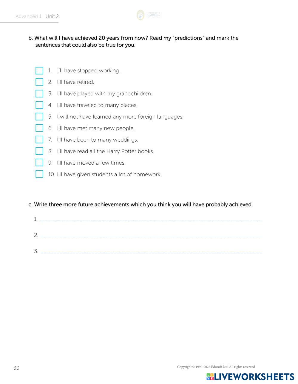 Solve the exercises from your workbook. Be careful with spelling and capital letters, try to answer with lower case letters.